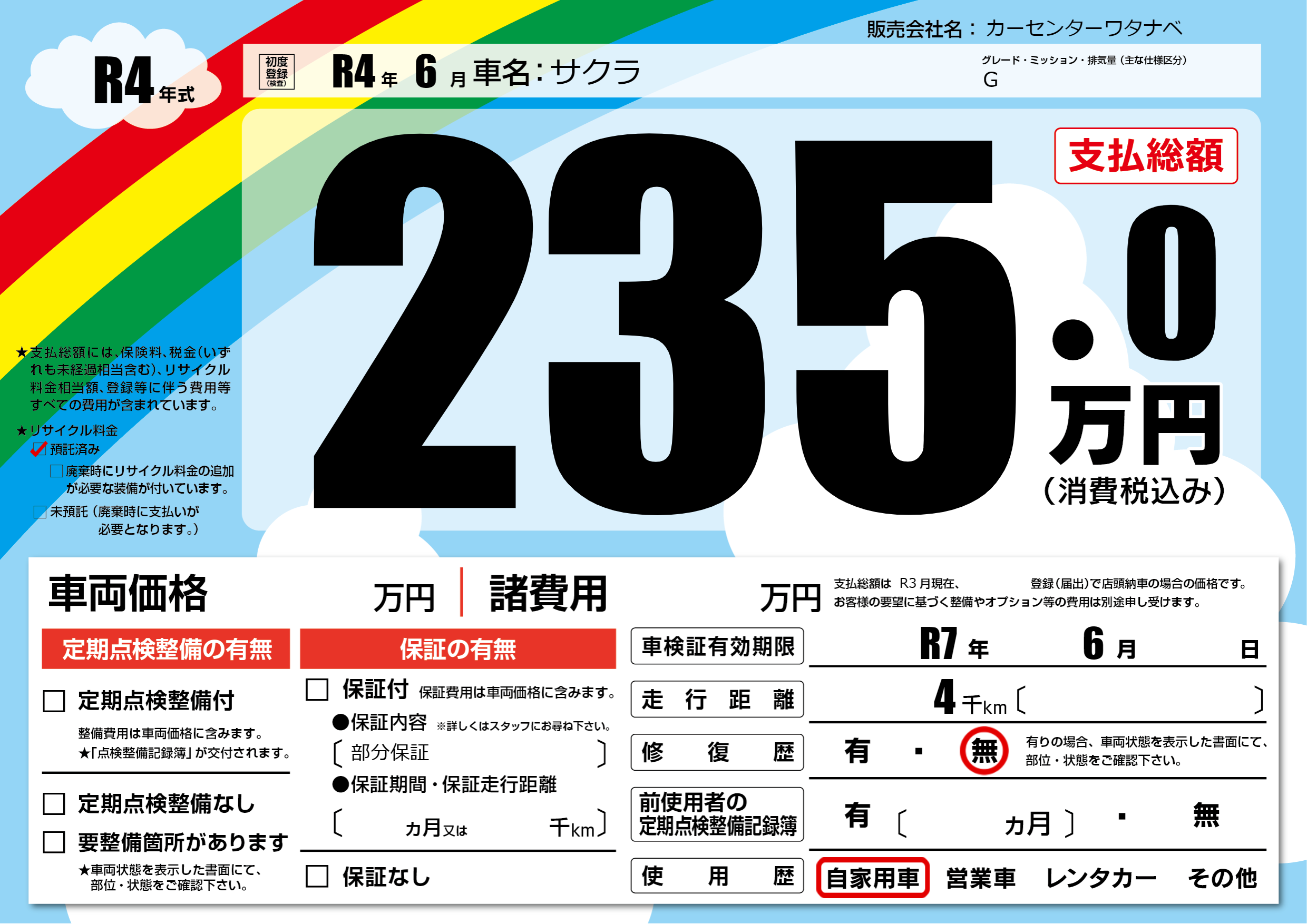 | 車名 | サクラ | グレード ミッション 排気量 |