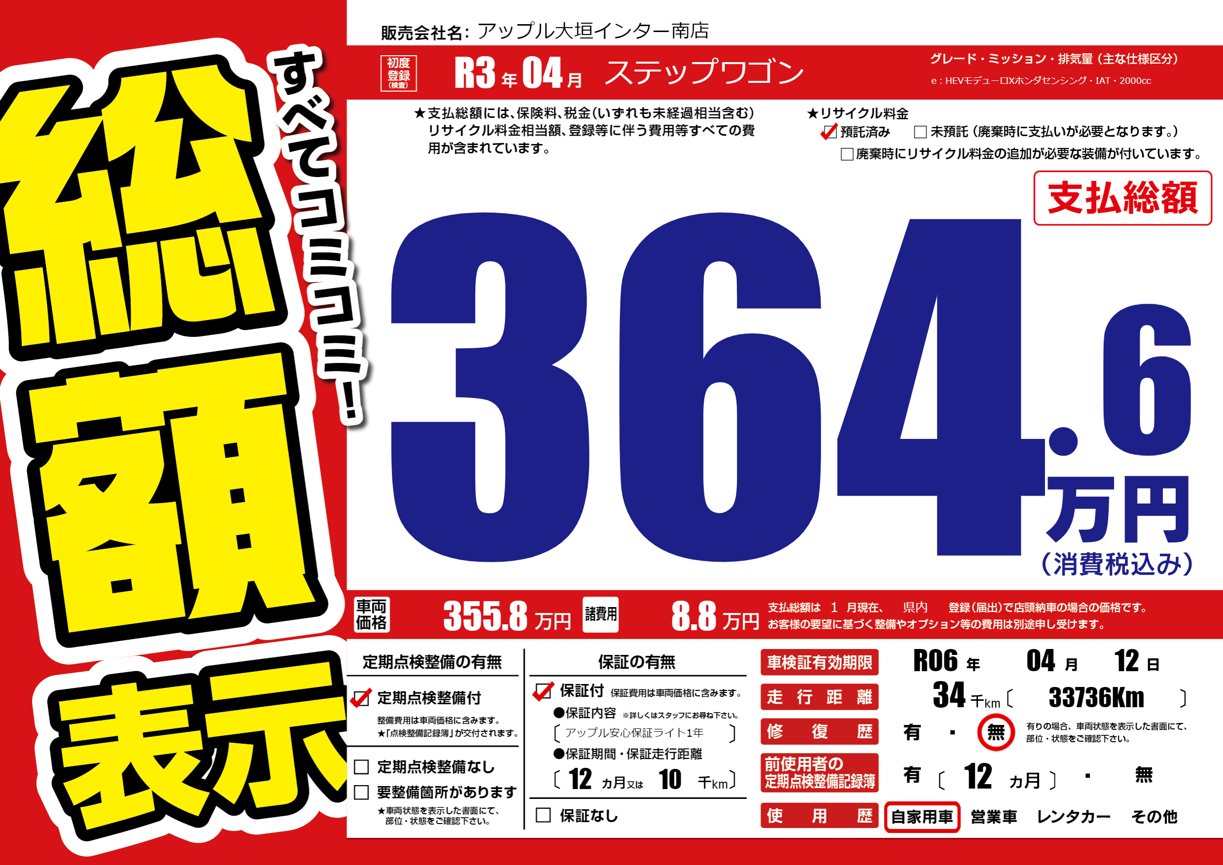 | 車名 | ステップワゴン | グレード ミッション 排気量 |