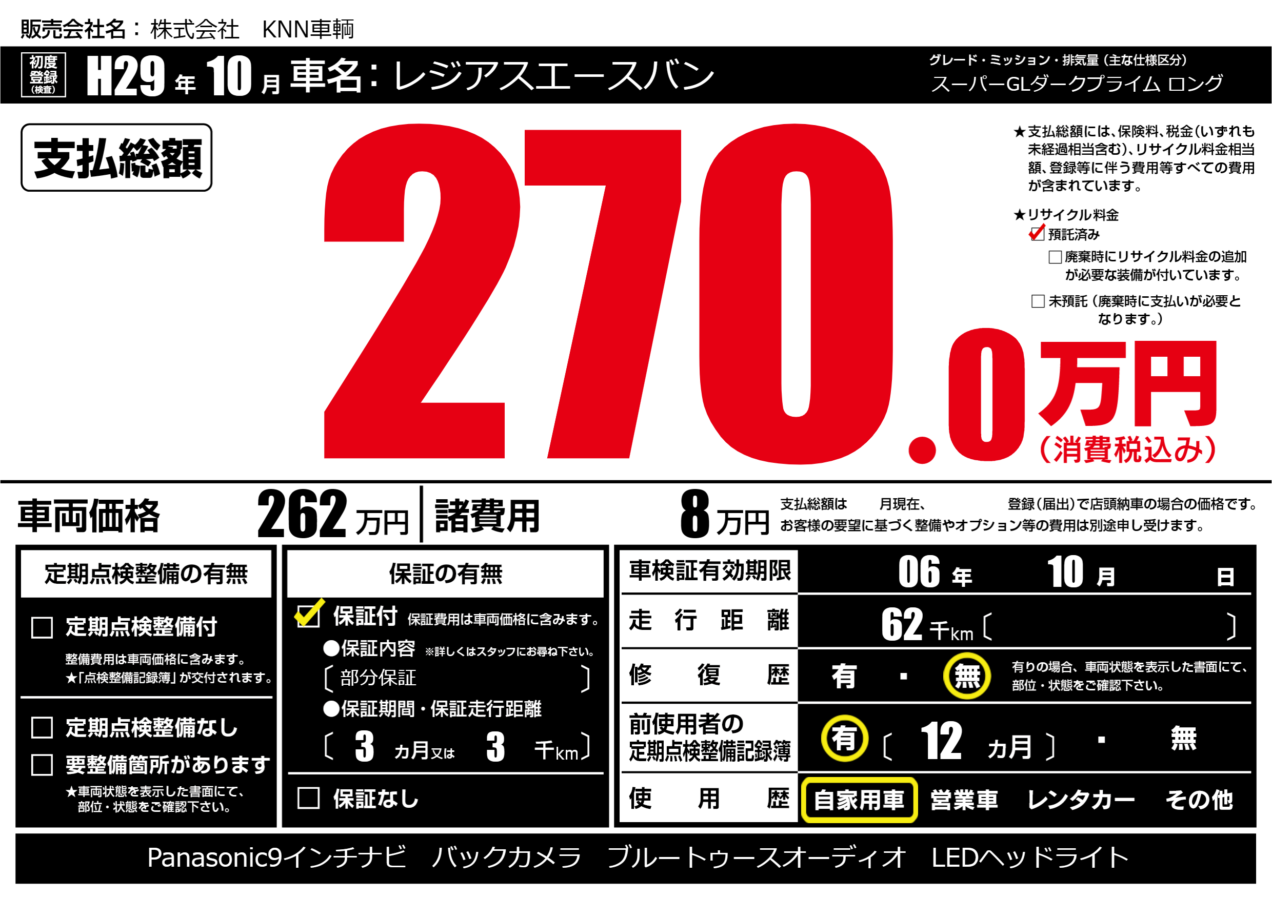 | 走行キロ | 6.2万km | 初年度登録 | H29年10月 |