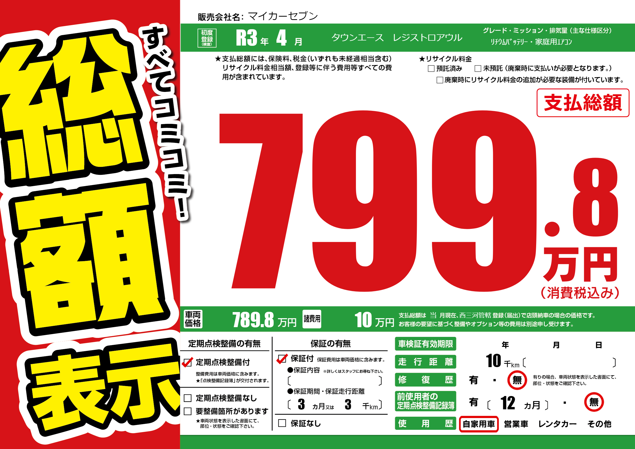 保証付き 保証内容(---) 3ヶ月または(3)千kmまで |