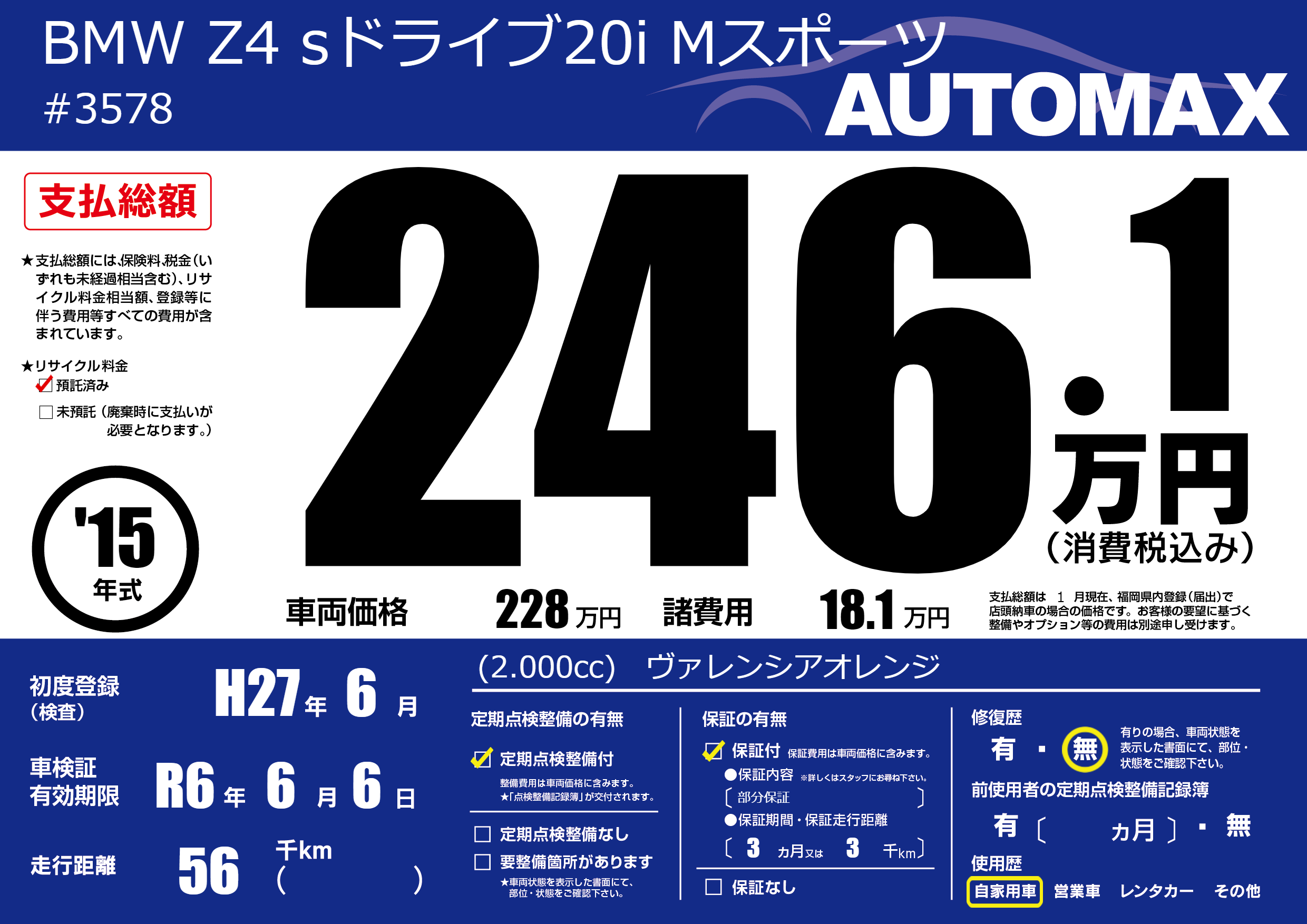 | 初年度登録 | H27年6月 | ||