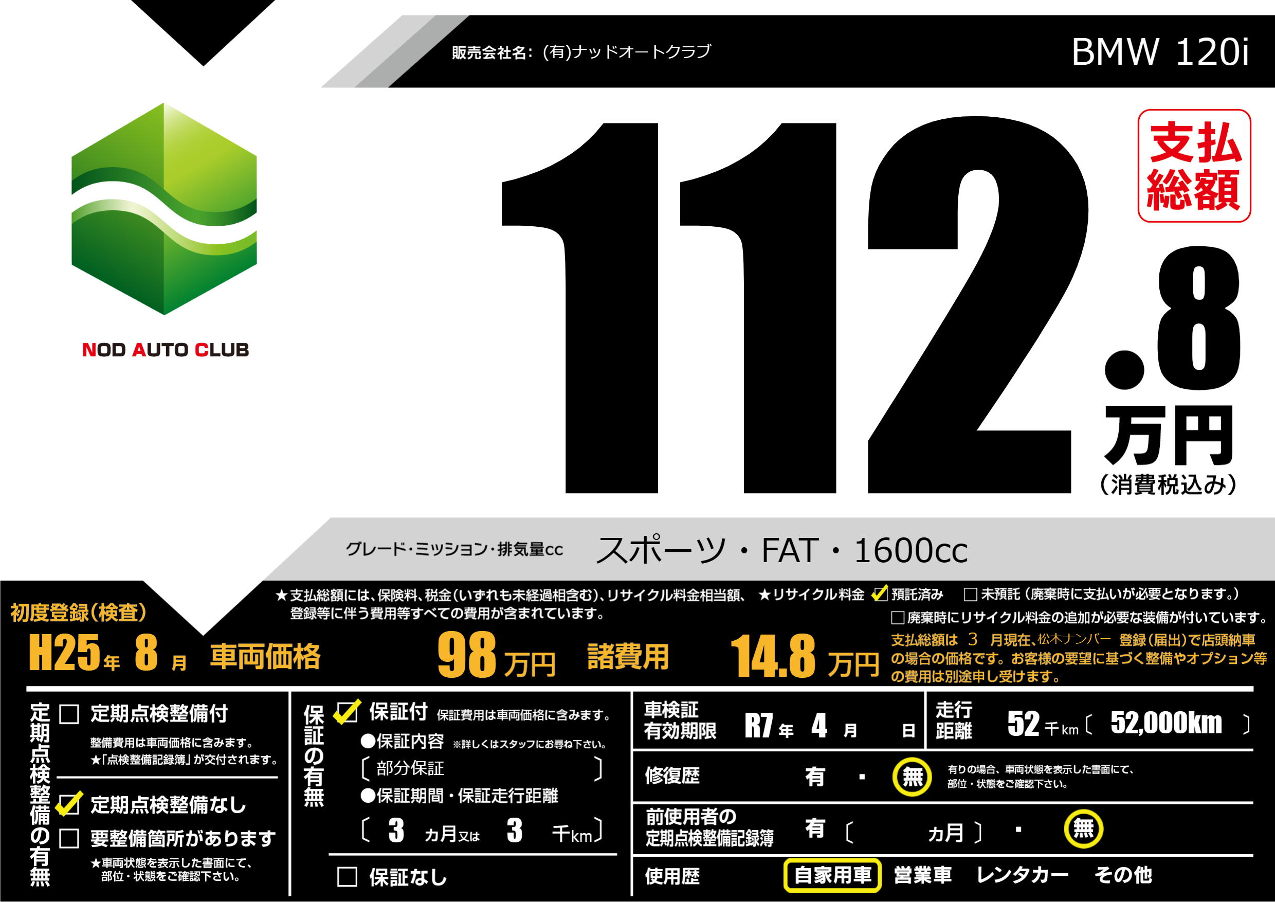 なし | 車検制限 | R7年4月---月 |