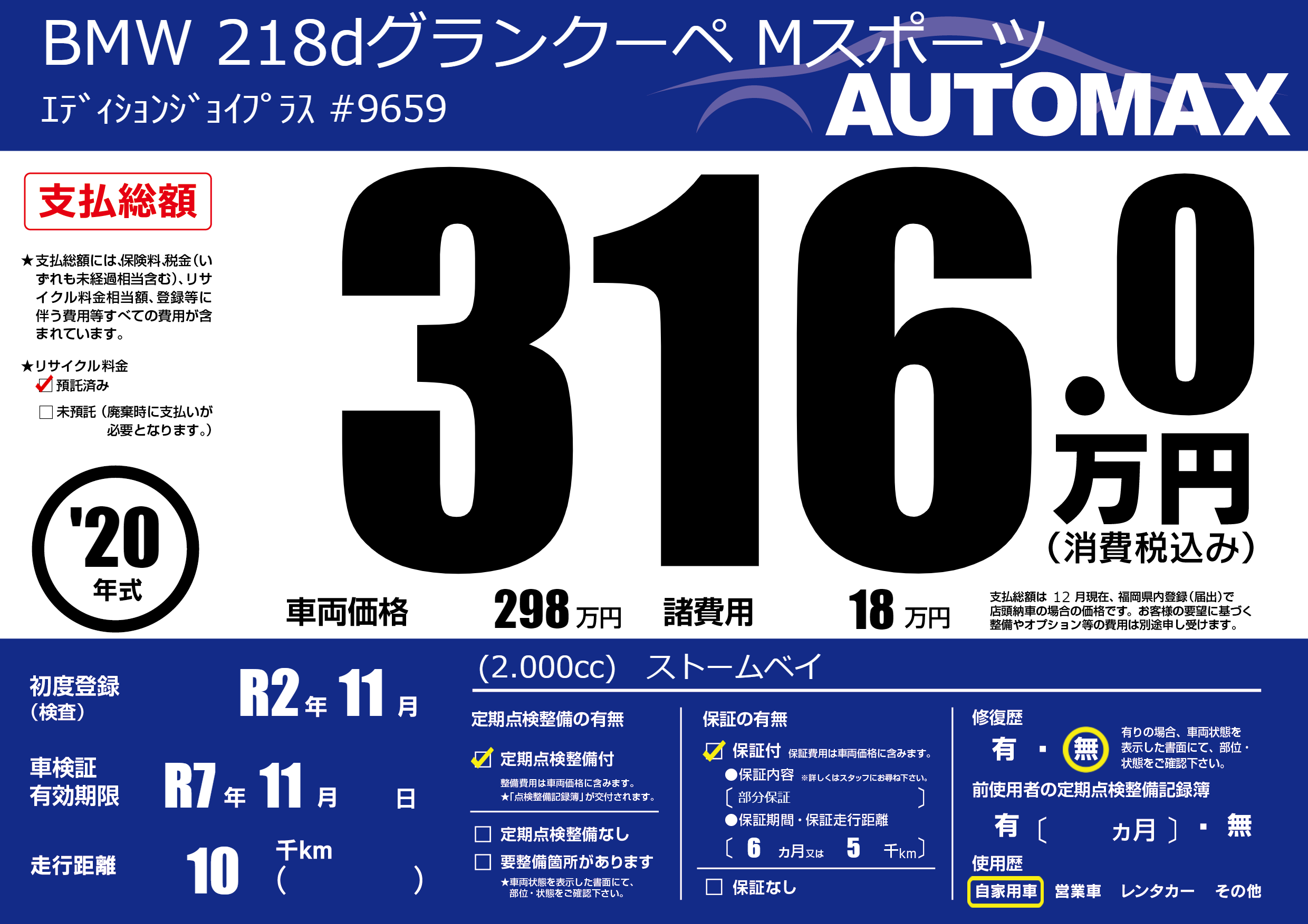 | 定期点検整備 | 定期点検整備あり | ||