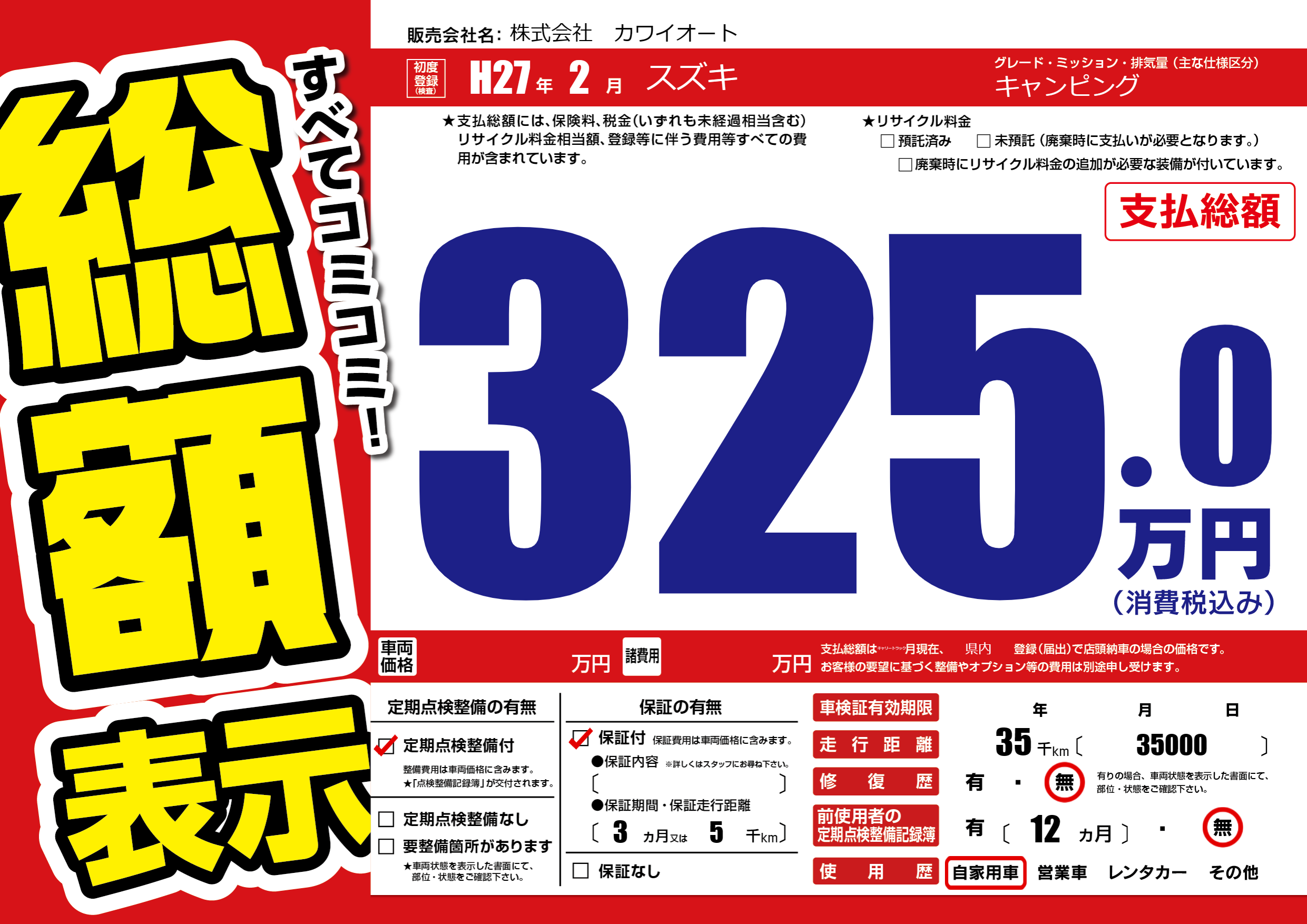| 車名 | スズキ | グレード ミッション 排気量 |