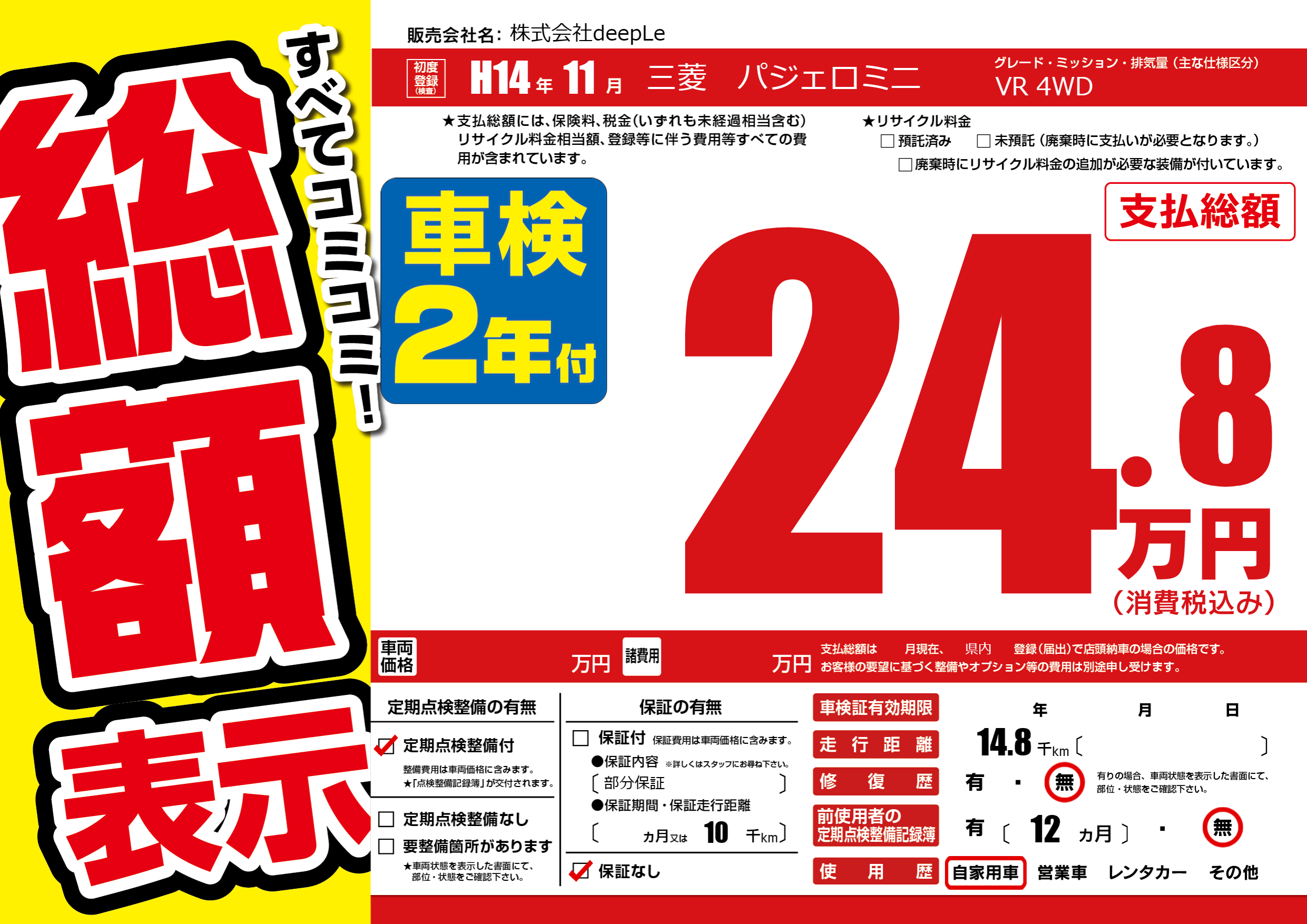 | 定期点検整備 | 定期点検整備あり | ||