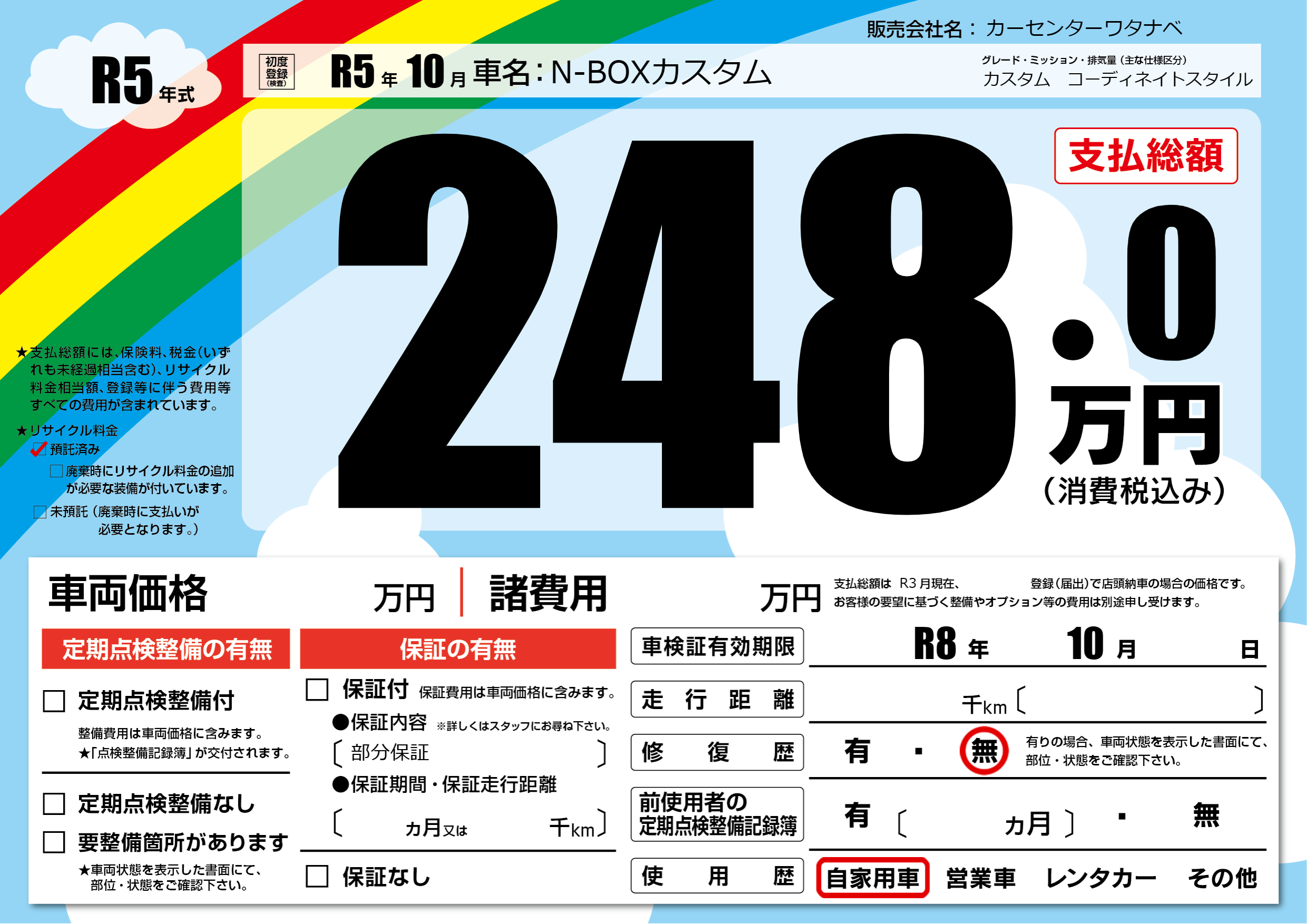 | 車名 | N-BOXカスタム | グレード ミッション 排気量 |