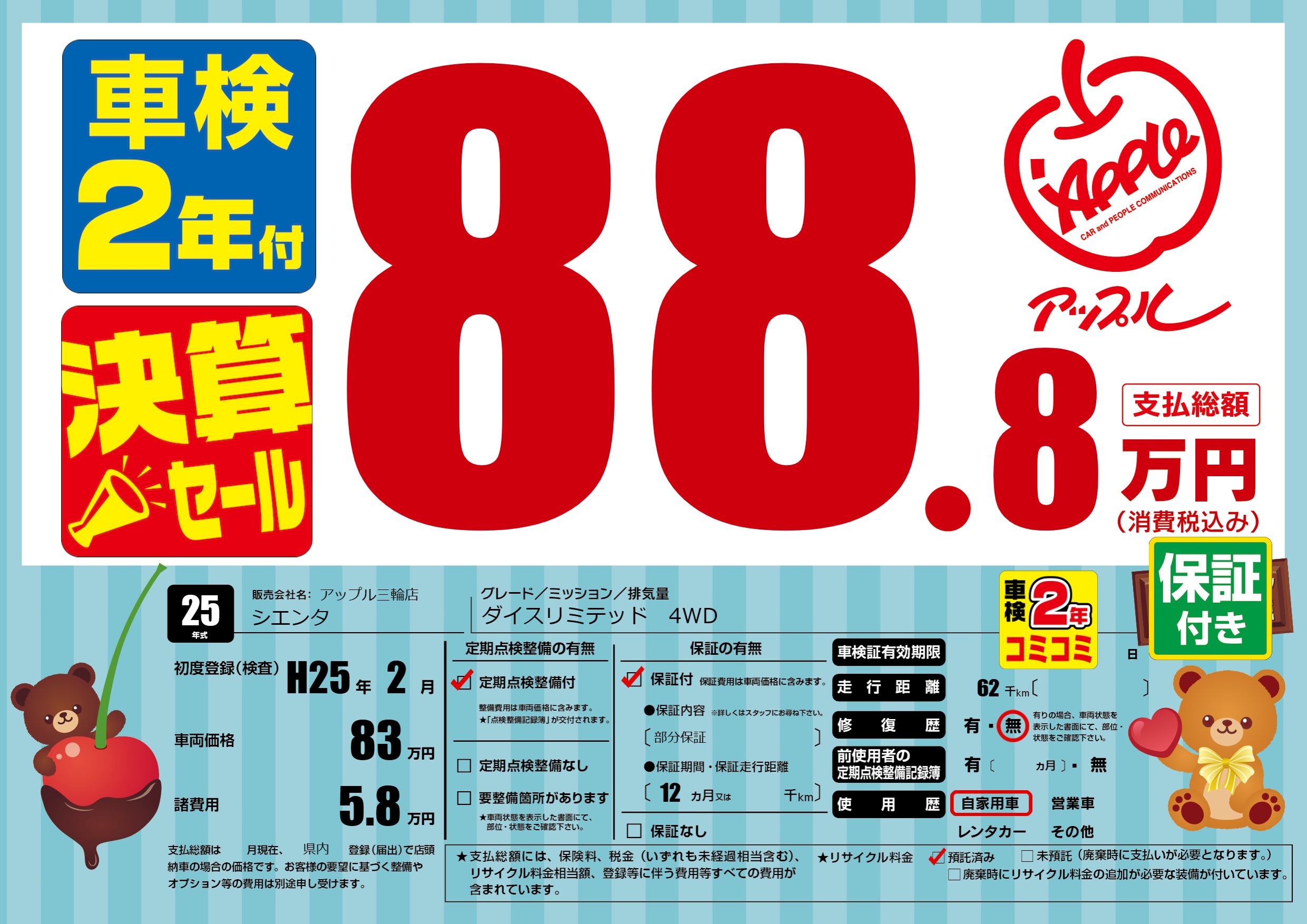 | 車名 | シエンタ | グレード ミッション 排気量 |