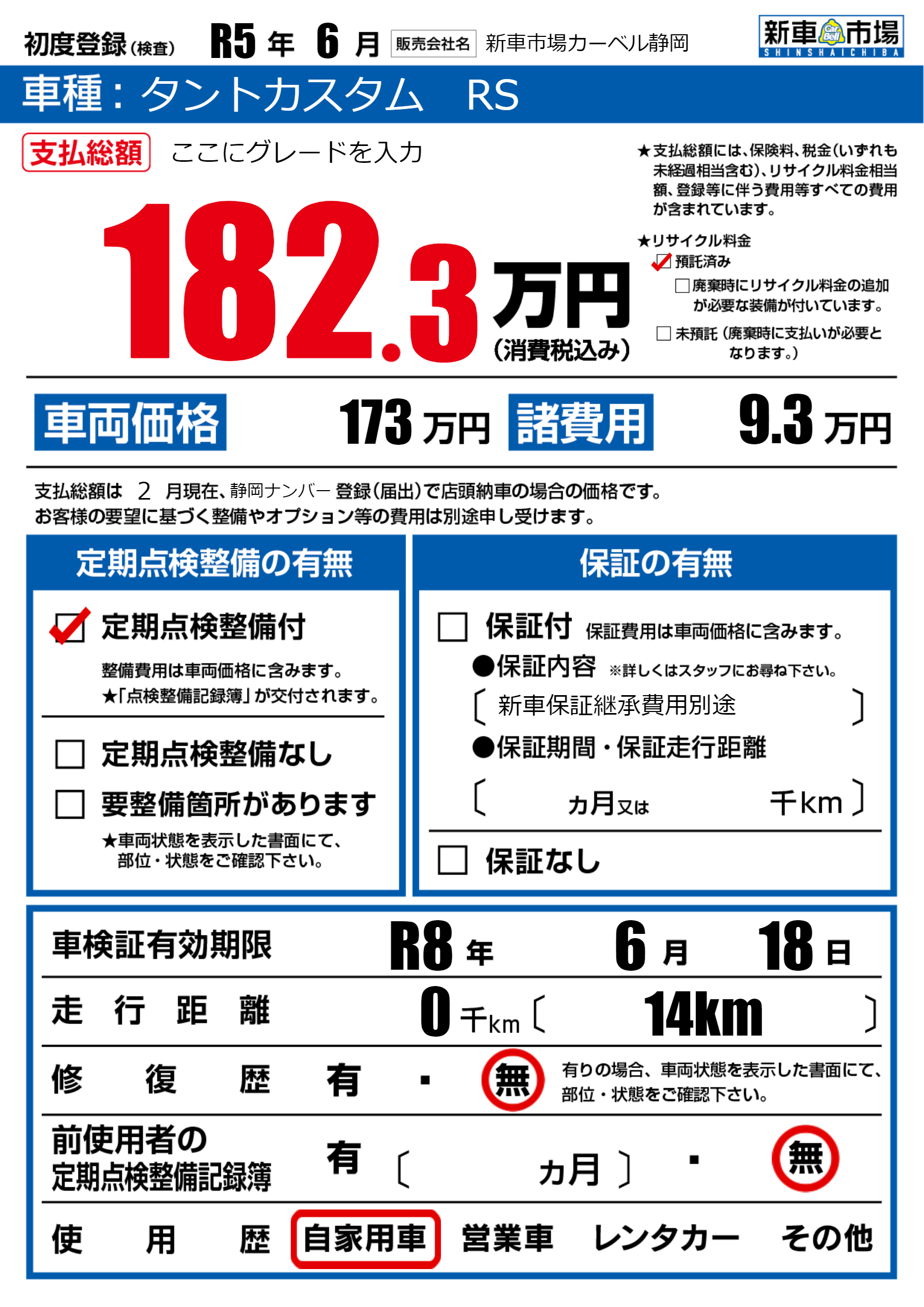保証なし 保証内容(新車保証継承費用別途) ---ヶ月または()千kmまで |