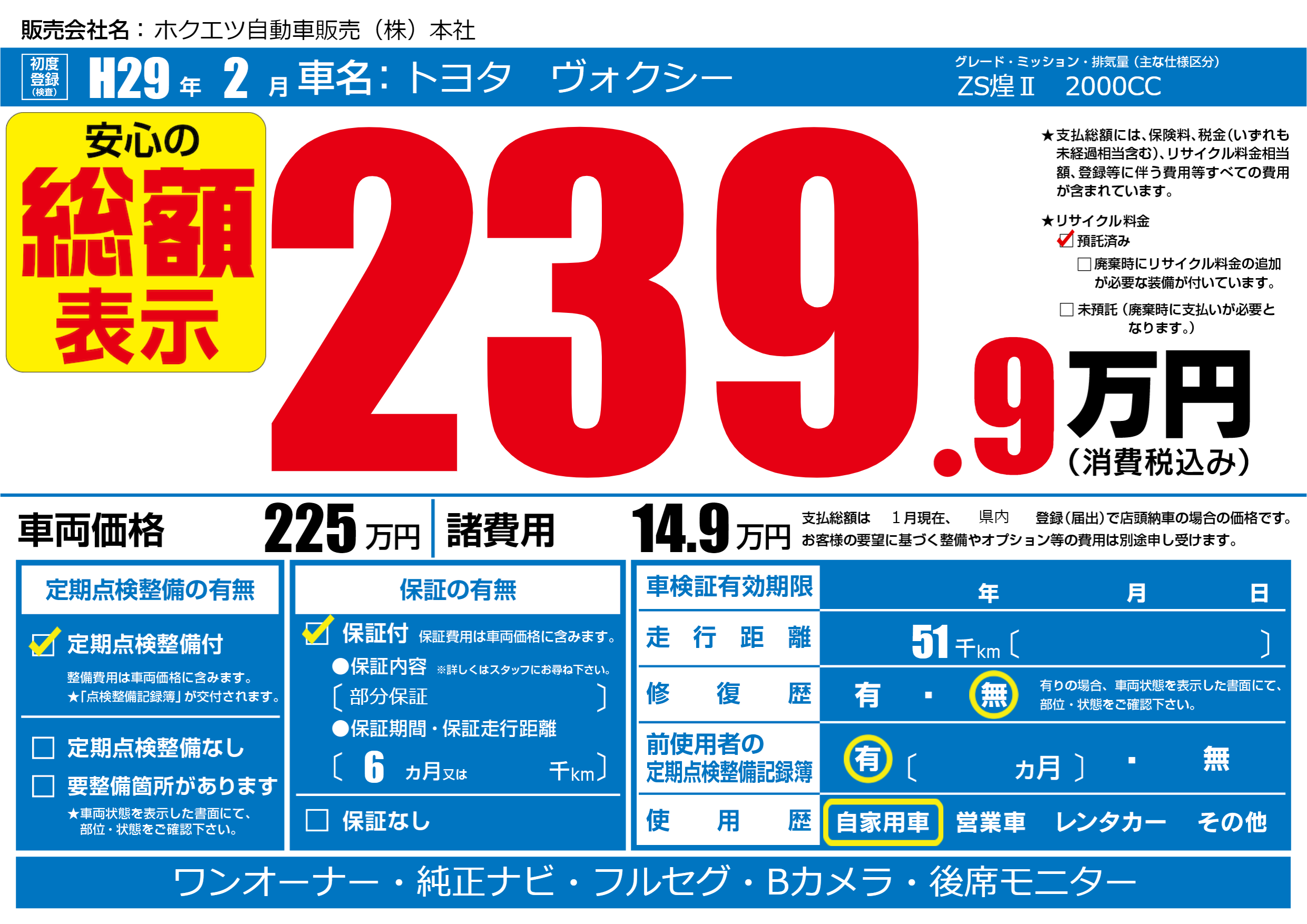 | 走行キロ | 5.1万km | 初年度登録 | H29年2月 |
