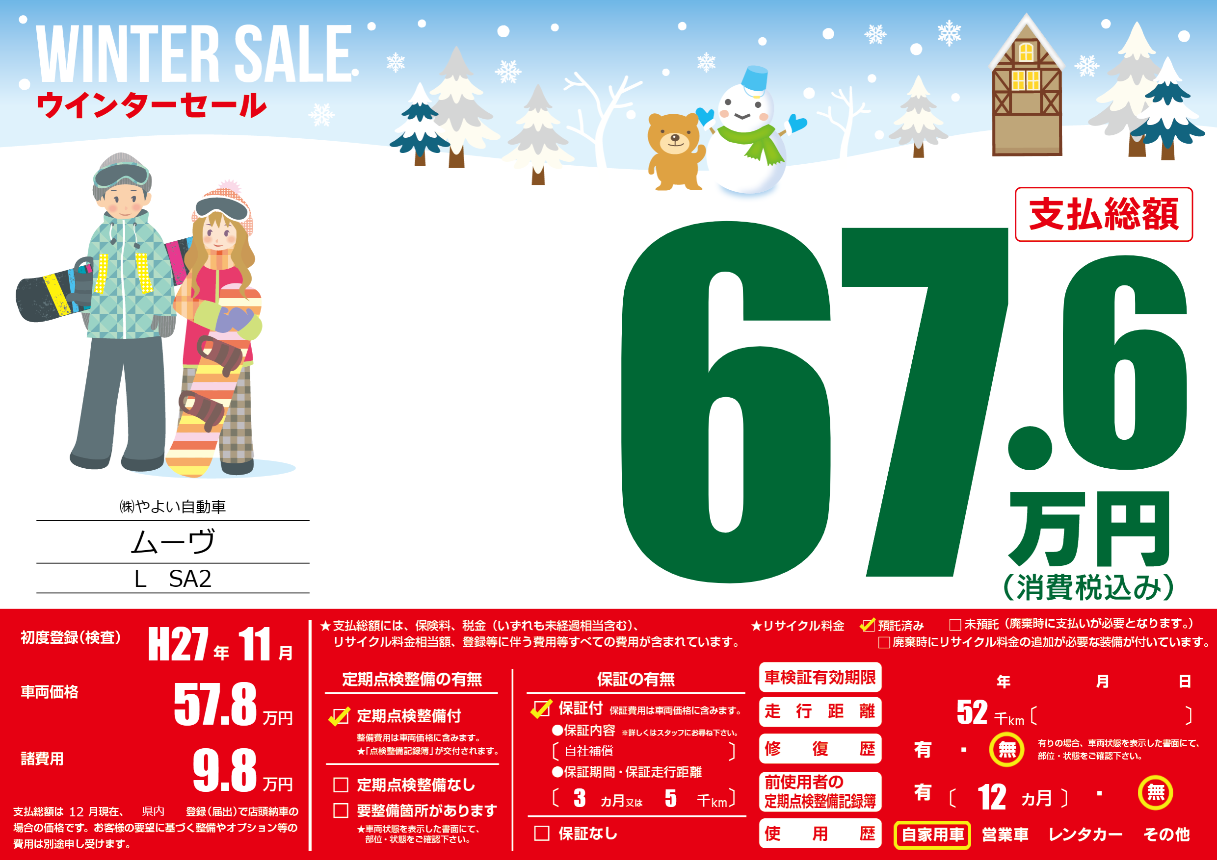 | 走行キロ | 5.2万km | 初年度登録 | H27年11月 |