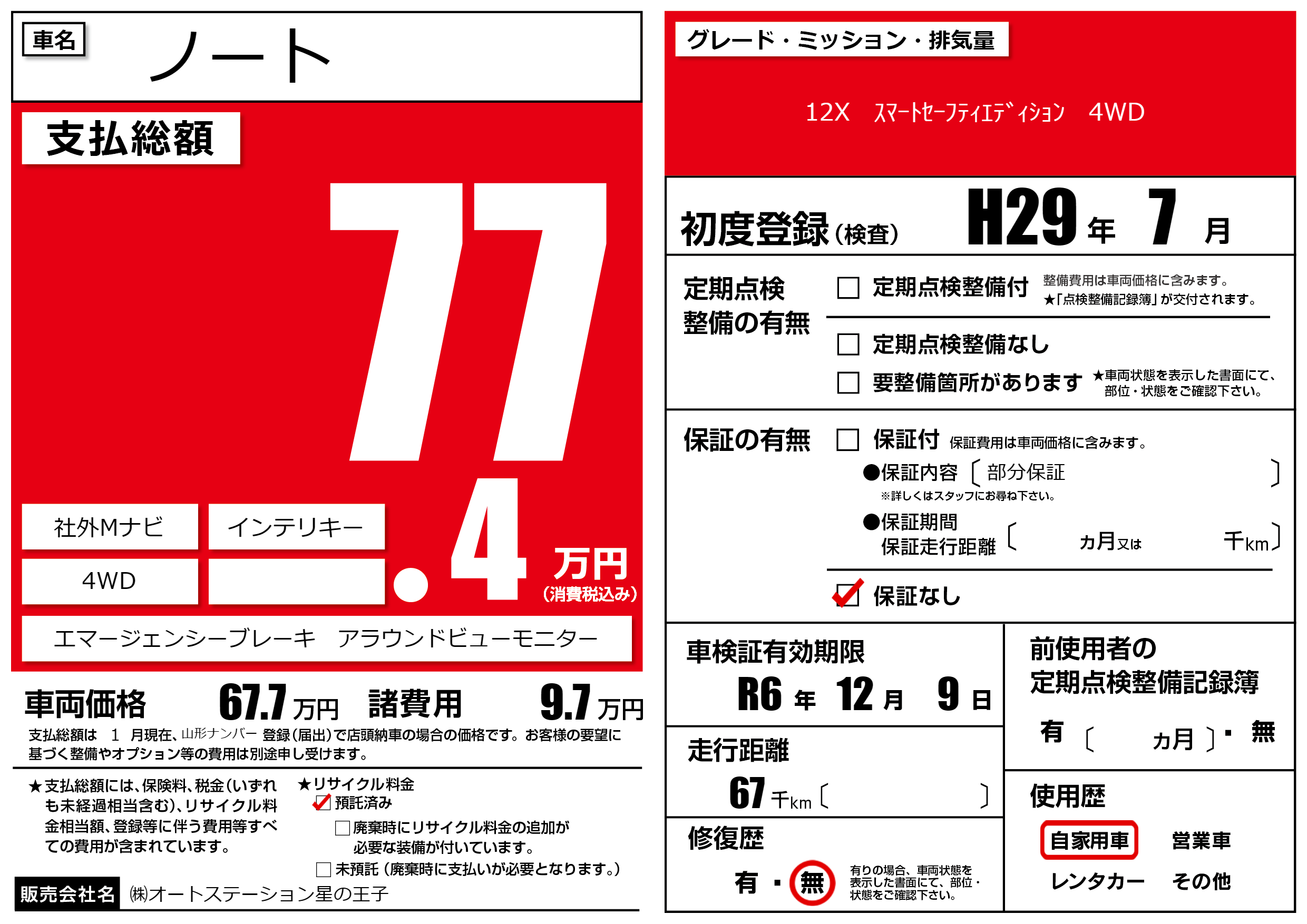 | 車検制限 | R6年 12月 9日 | ||