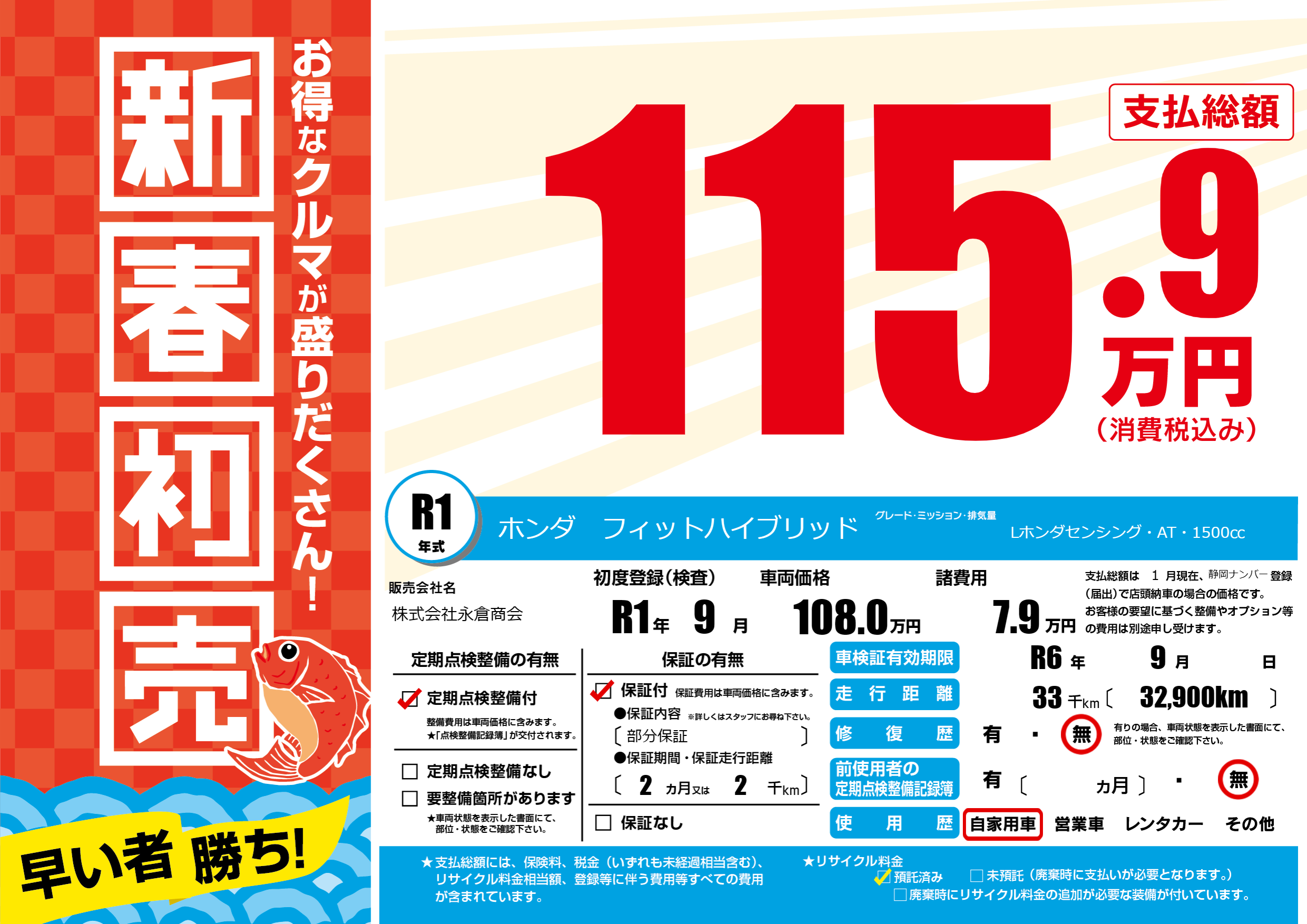 | 車名 | ホンダ フィットハイブリッド | グレード ミッション 排気量 |