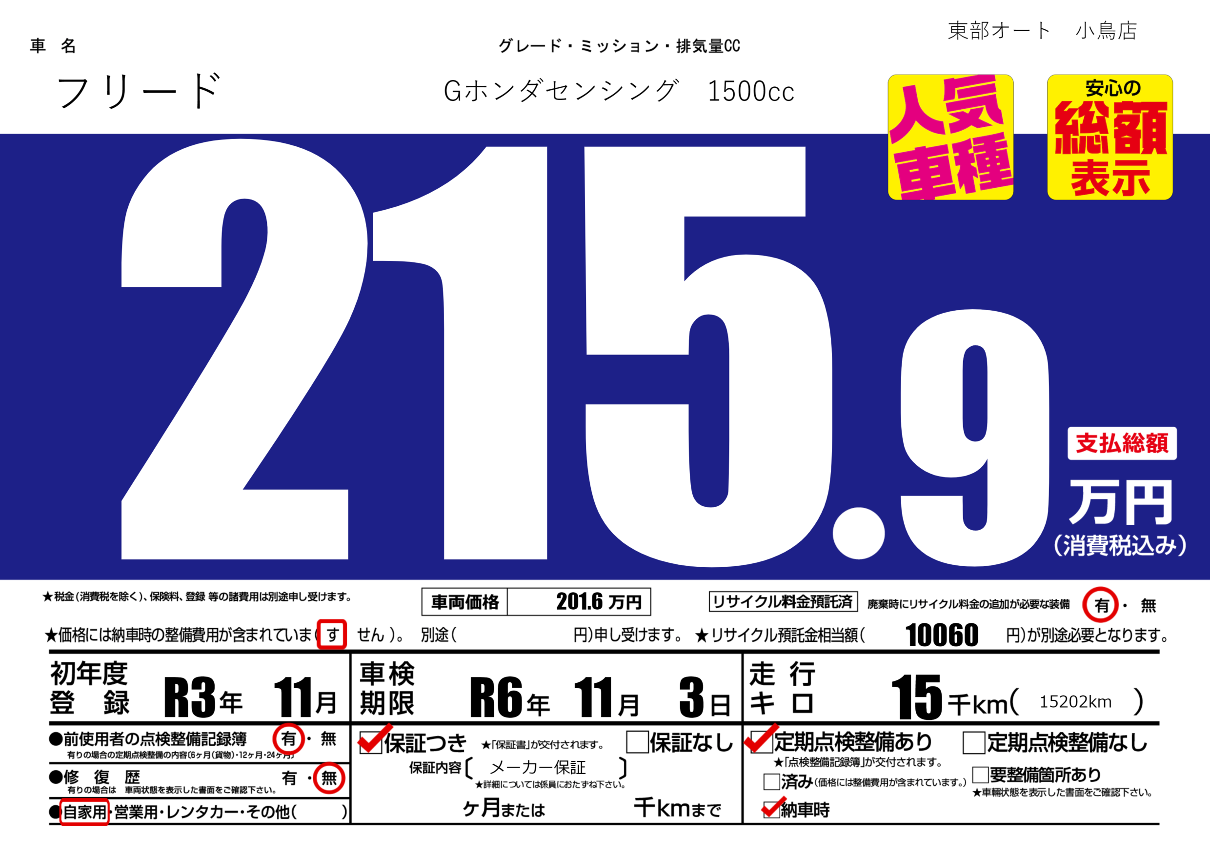 あり | 車検制限 | R6年11月3月 |