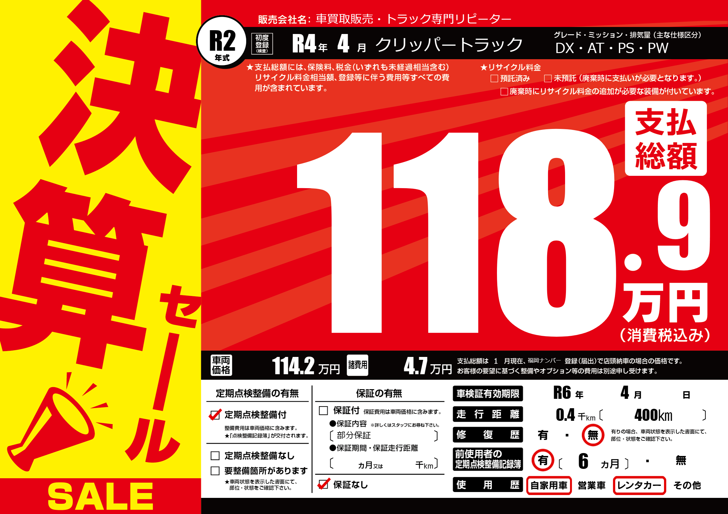 | 走行キロ | - | 初年度登録 | R4年4月 |