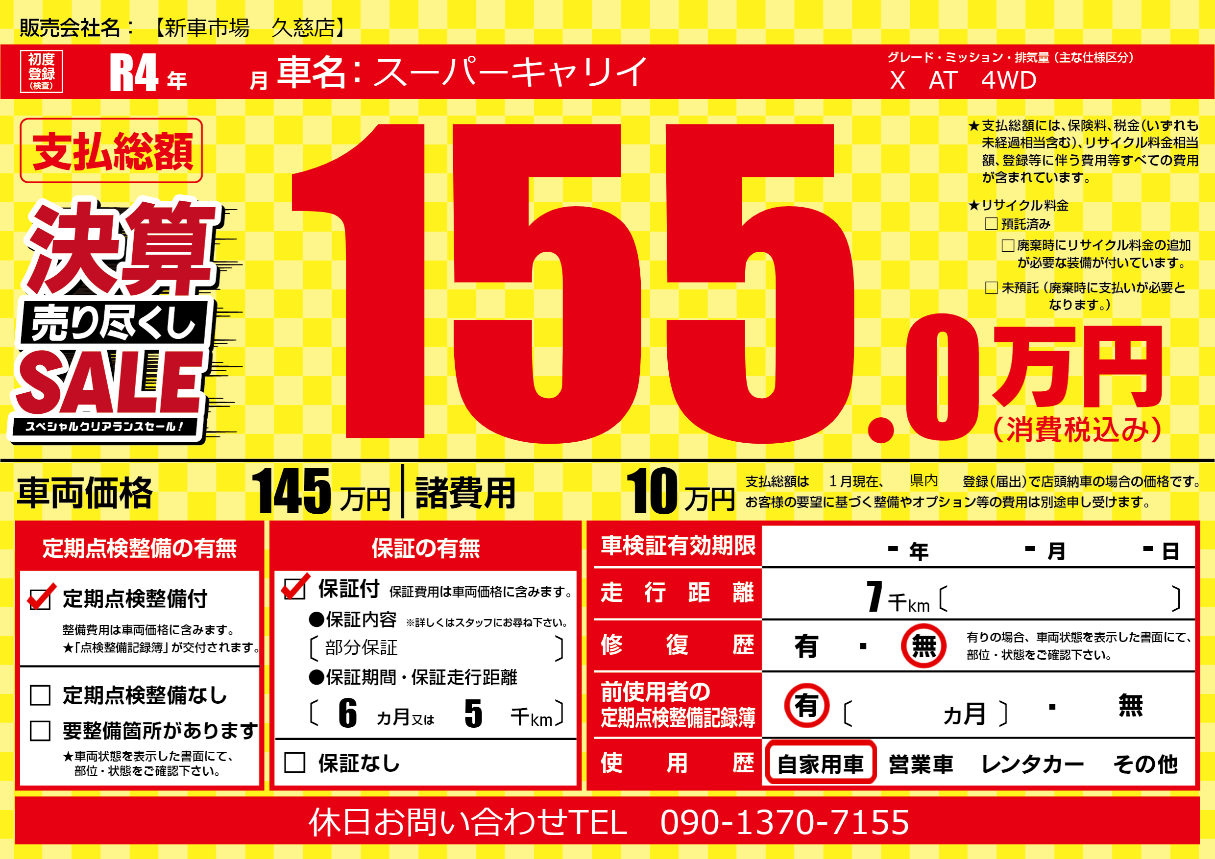 | 走行キロ | 0.7万km | 初年度登録 | R4年---月 |