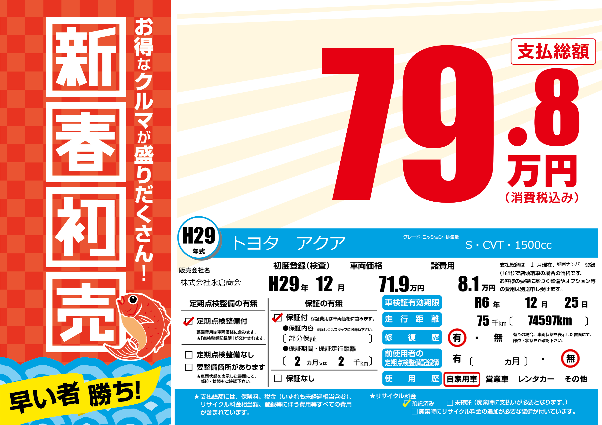 | 車名 | トヨタ アクア | グレード ミッション 排気量 |