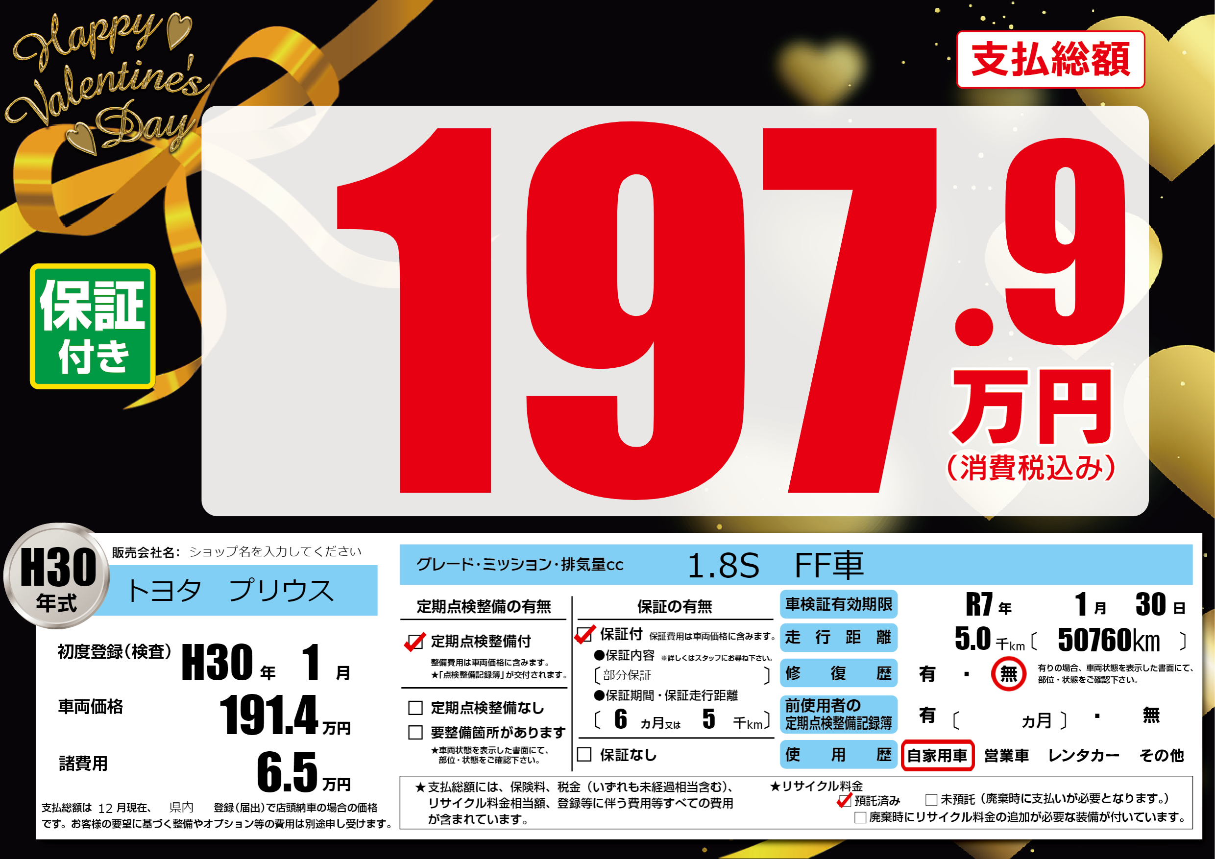 | 車検制限 | R7年 1月 30日 | ||