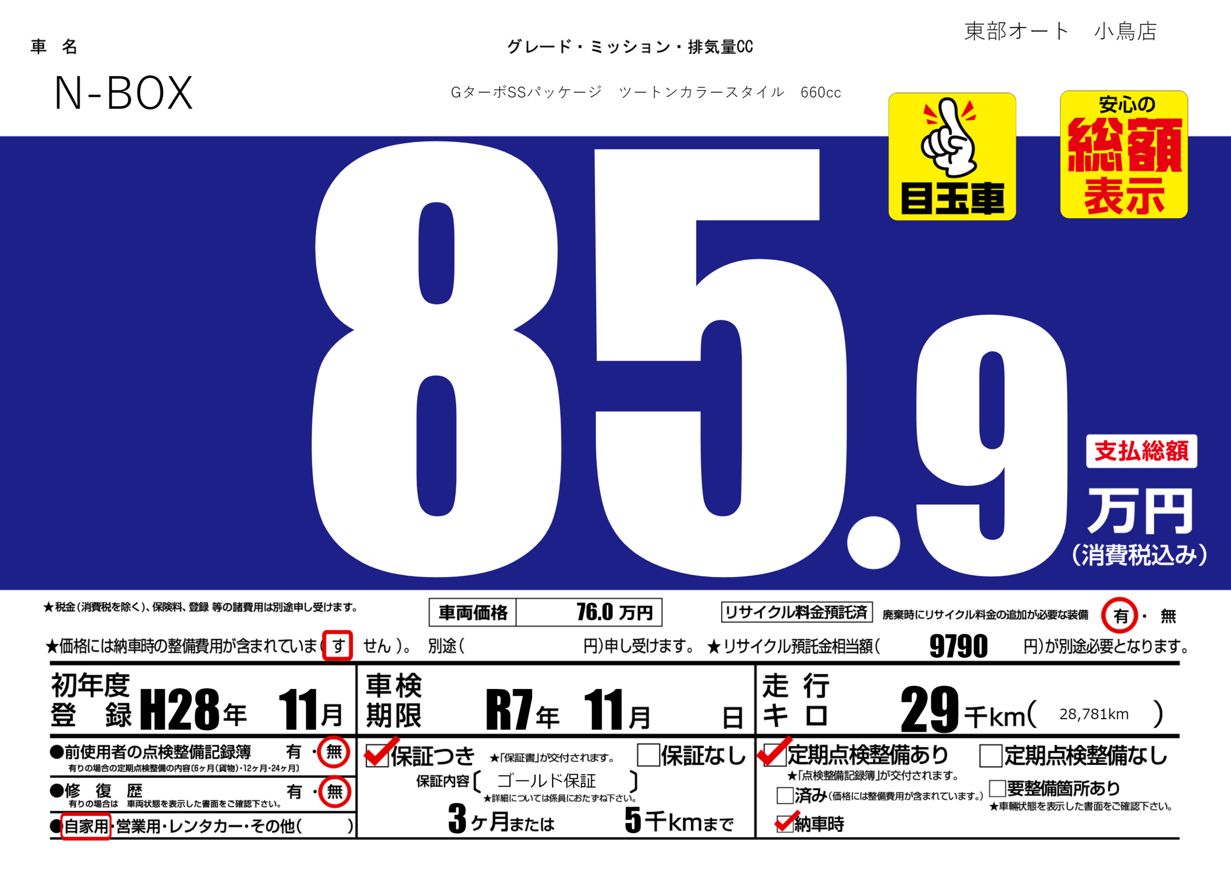 保証付き 保証内容( ゴールド保証) 3ヶ月または(5)千kmまで |