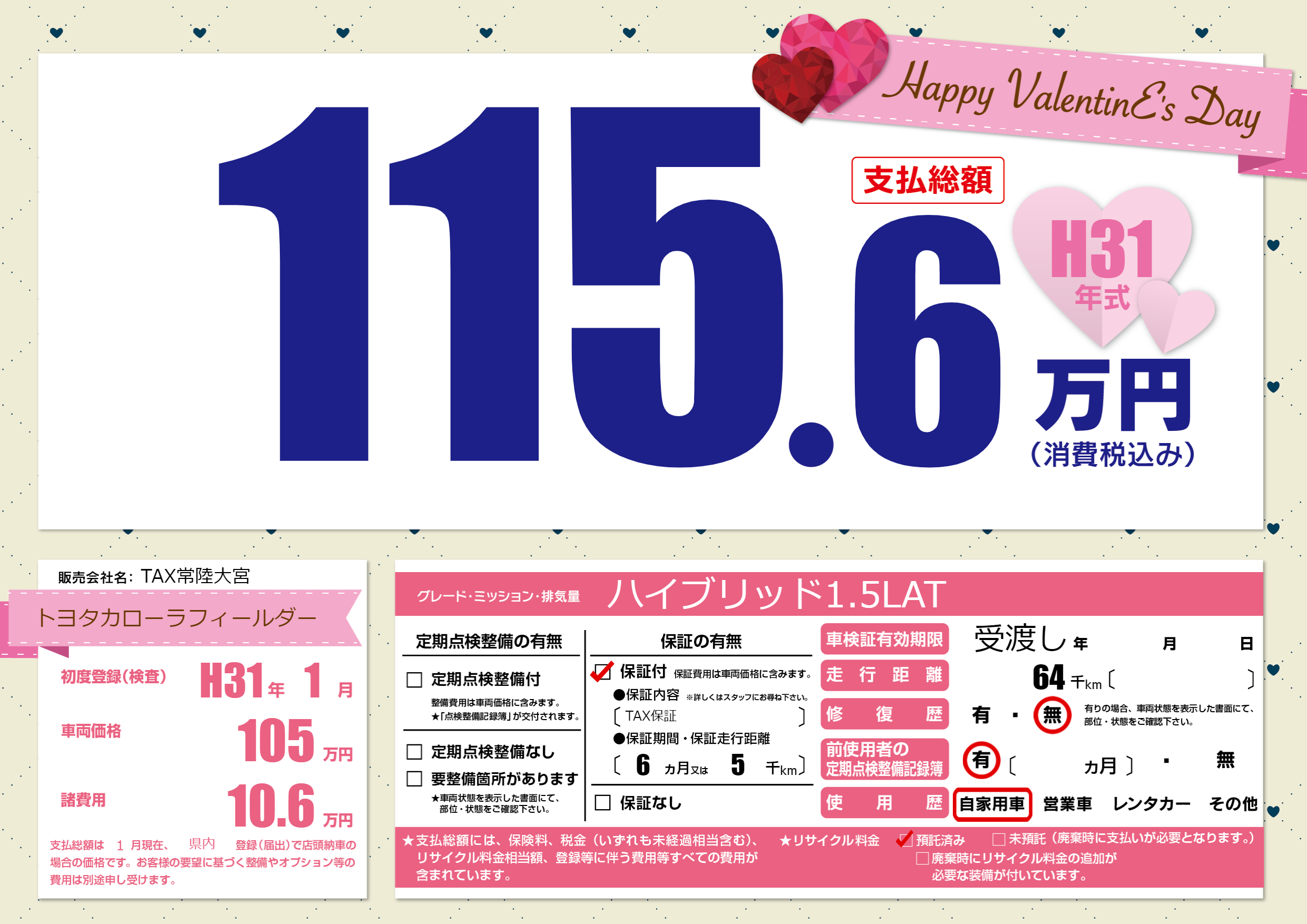 保証付き 保証内容(TAX保証) 6ヶ月または(5)千kmまで |