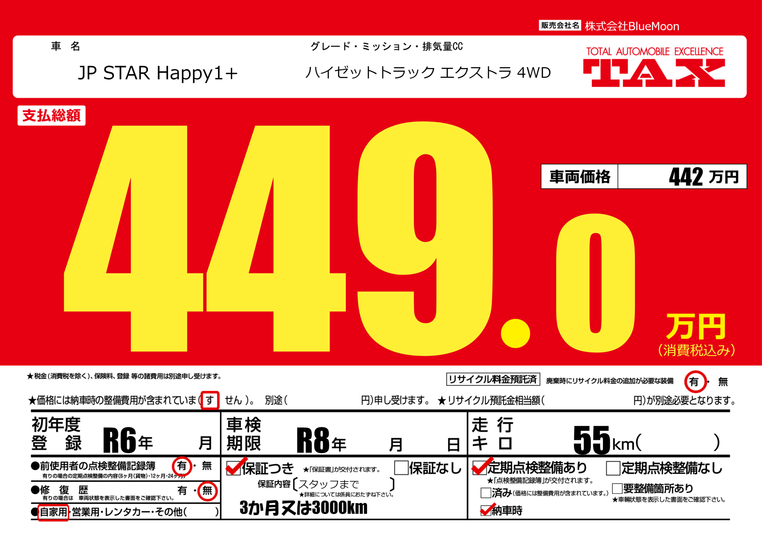 | 車名 | JP STAR Happy1+ | グレード ミッション 排気量 |