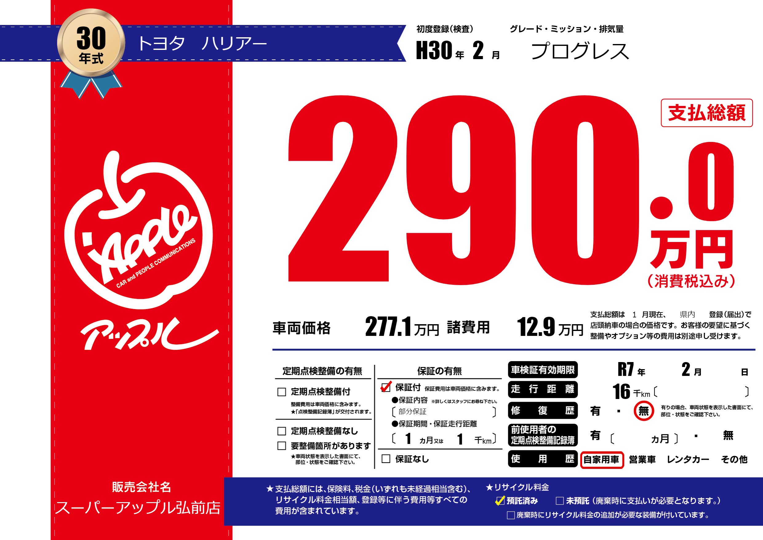 | 車名 | トヨタ ハリアー | グレード ミッション 排気量 |