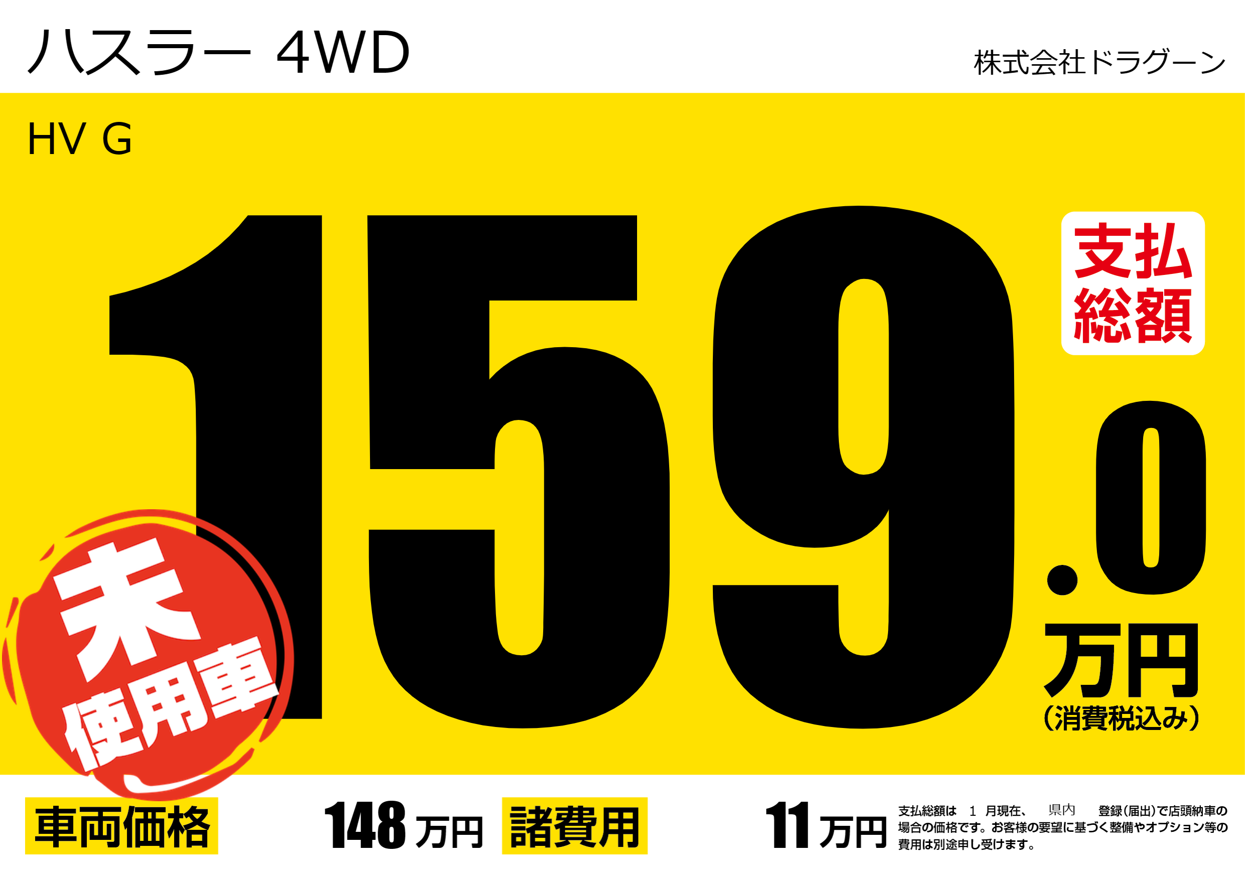 | 車名 | ハスラー 4WD | グレード ミッション 排気量 |