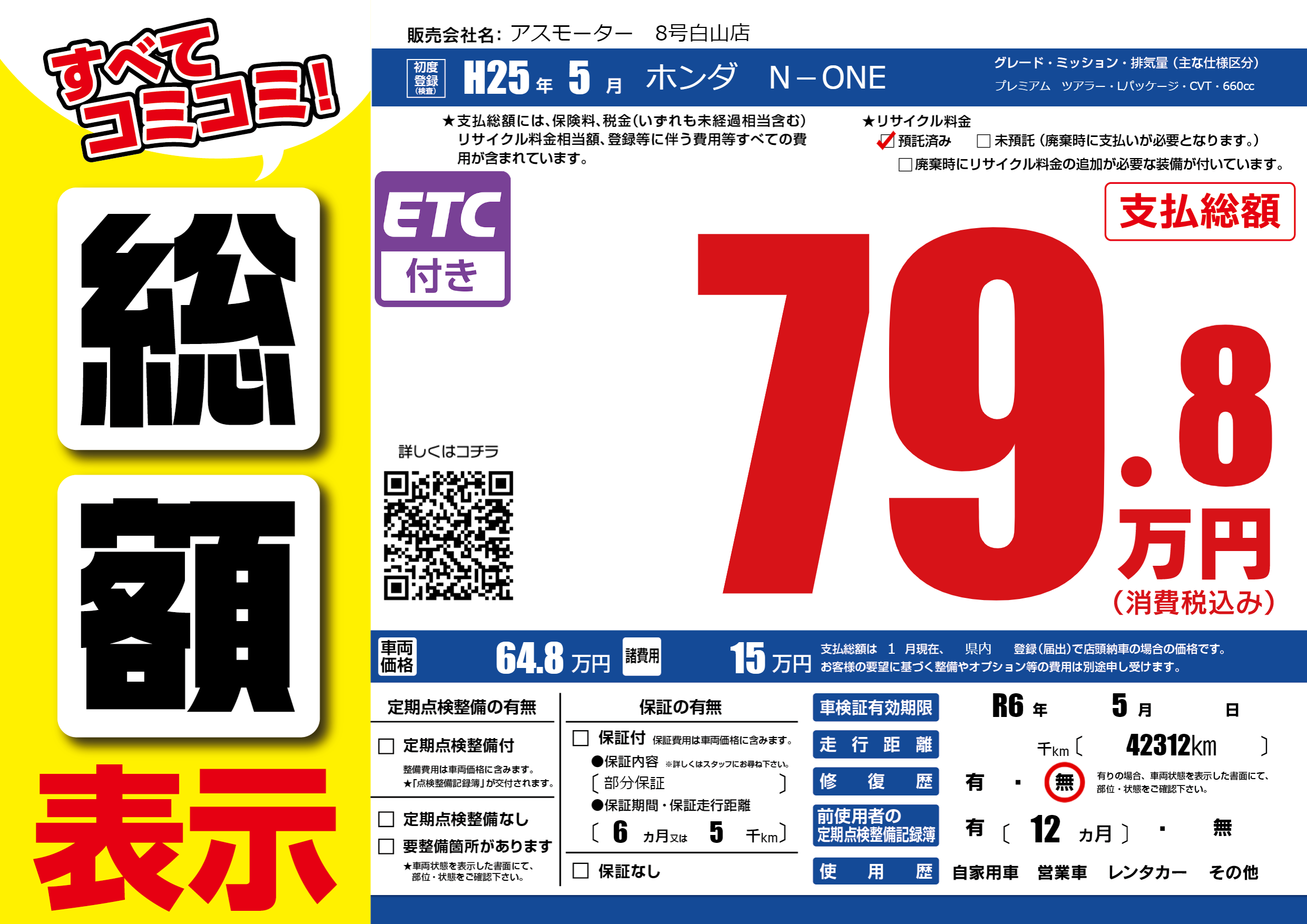 なし | 車検制限 | R6年5月---月 |