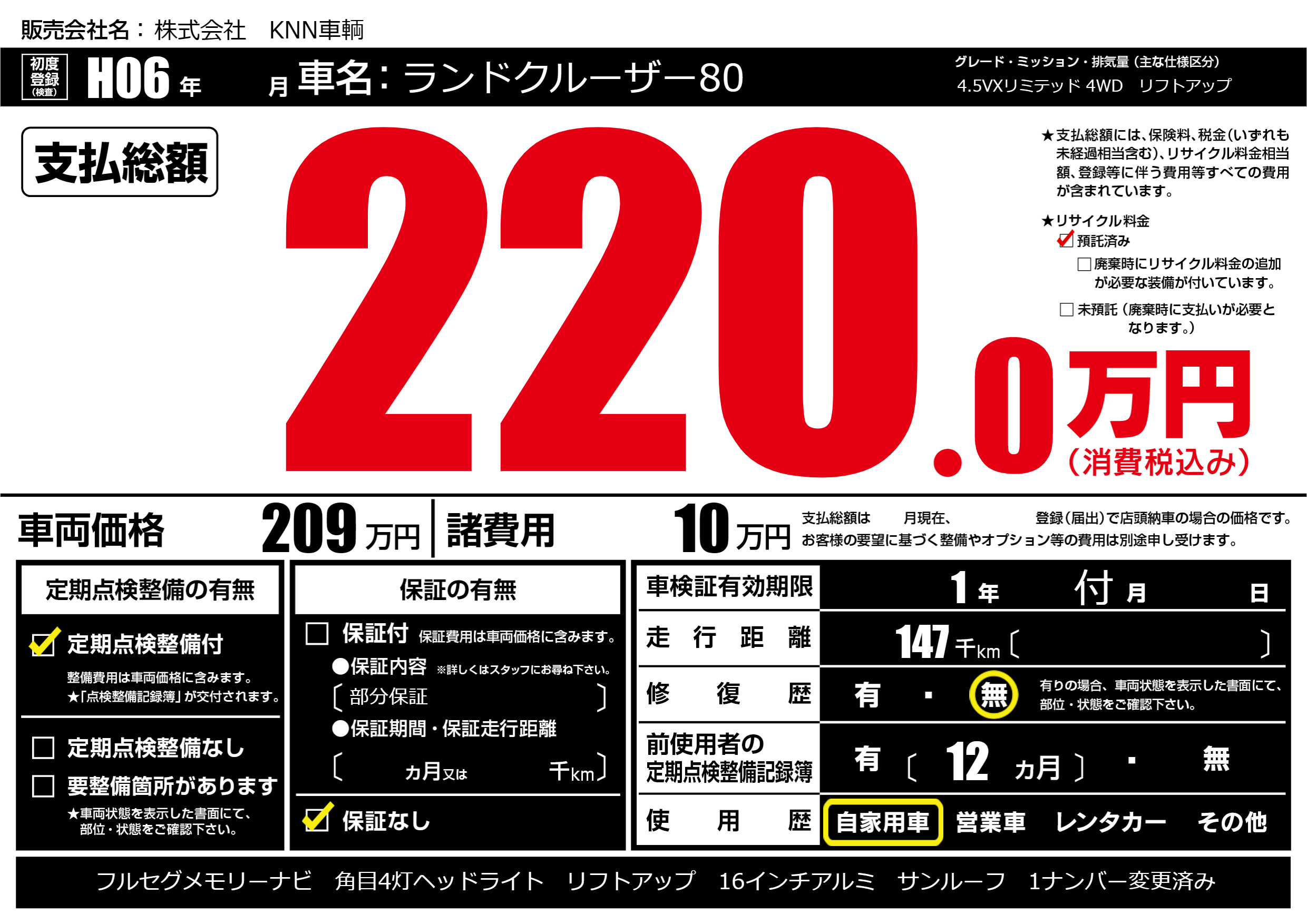 | 車検制限 | 1年 付月 - 日 | ||