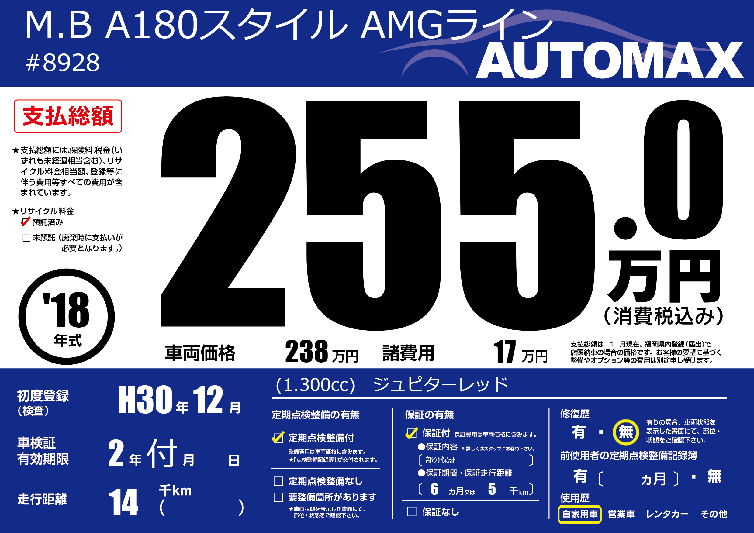| 初年度登録 | H30年12月 | ||