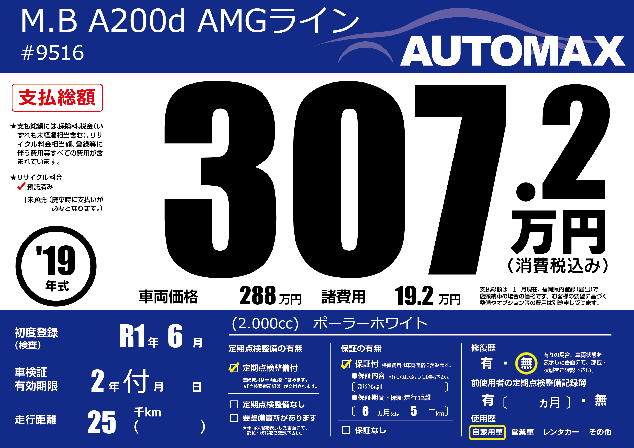 | 定期点検整備 | 定期点検整備あり | ||