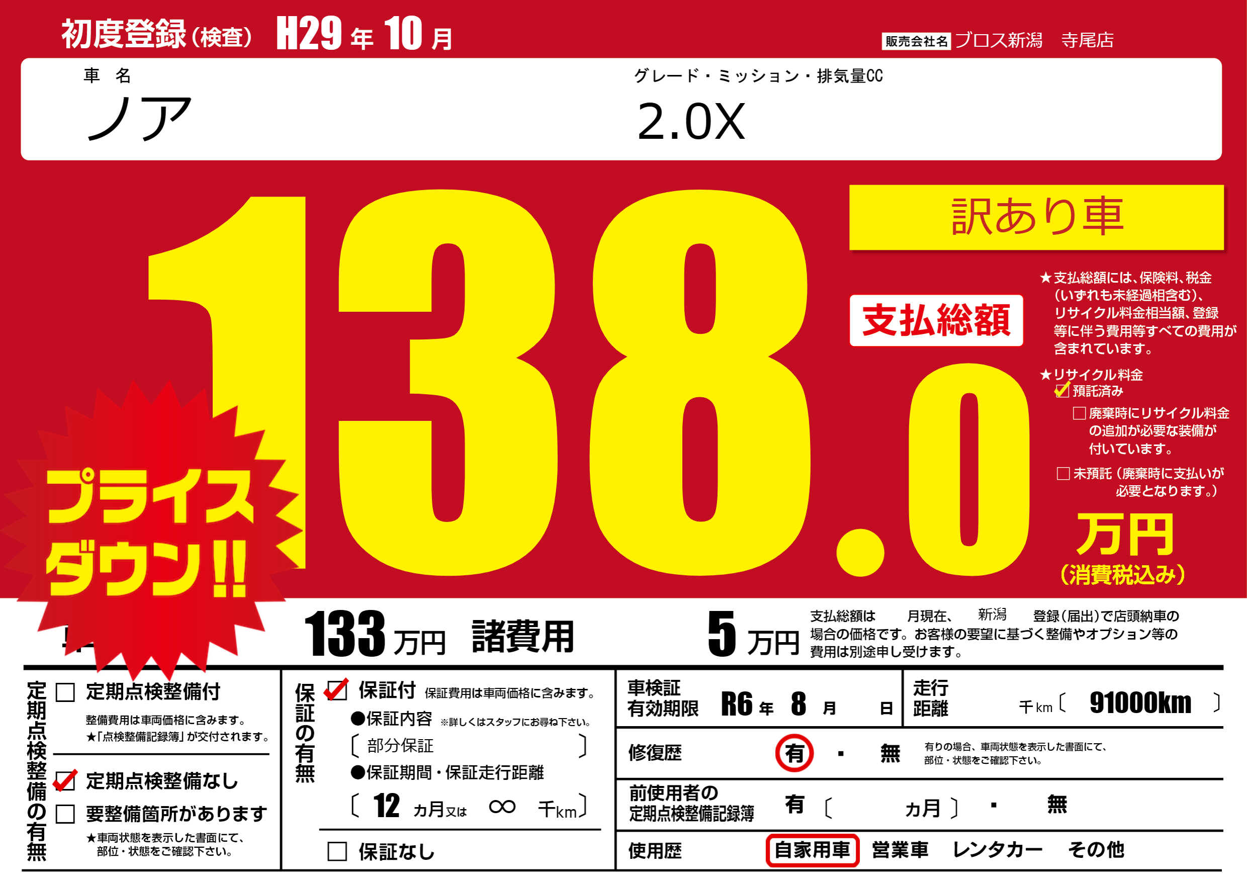 | 車検制限 | R6年 8月 - 日 | ||