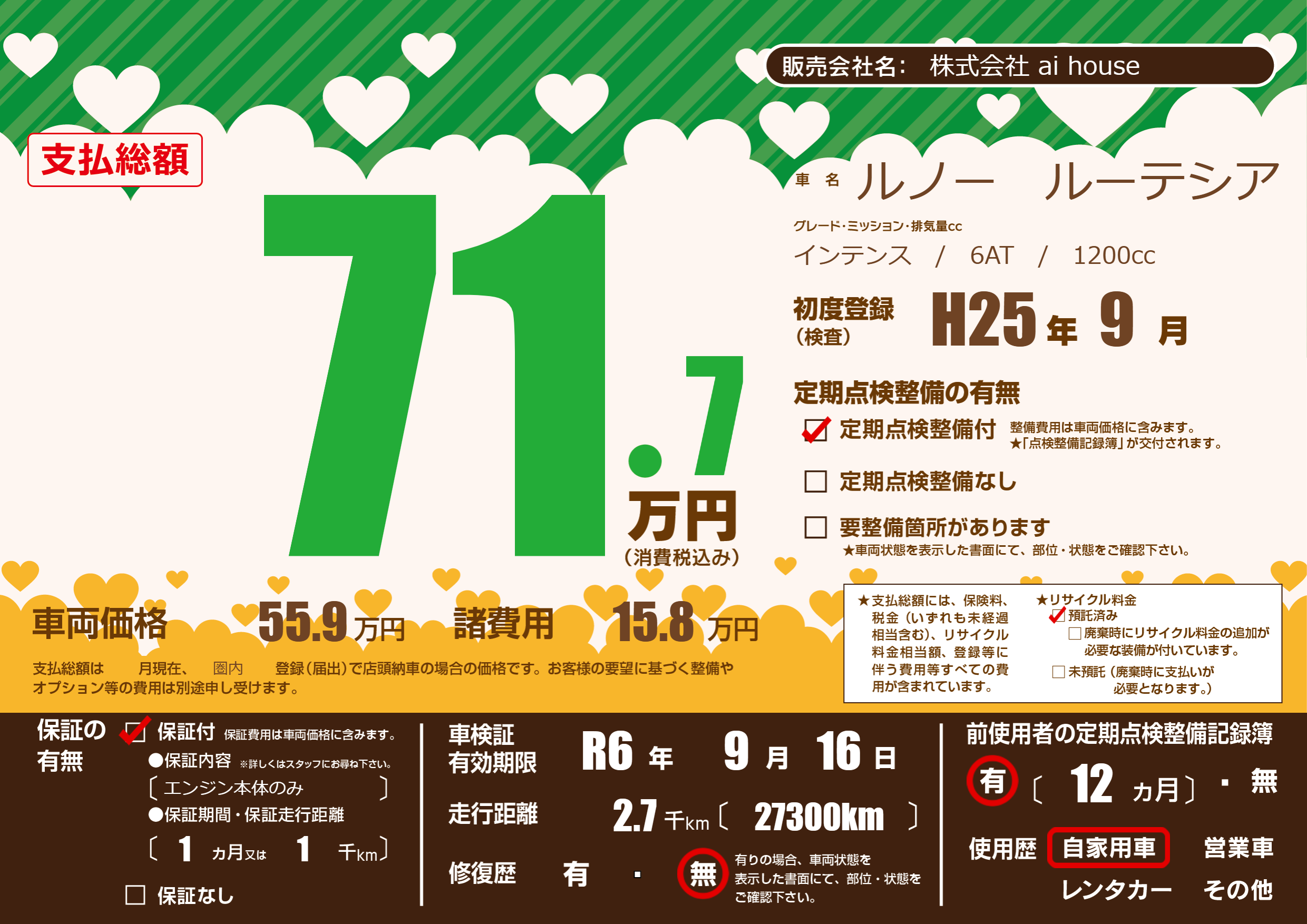 | 定期点検整備 | 定期点検整備あり | ||