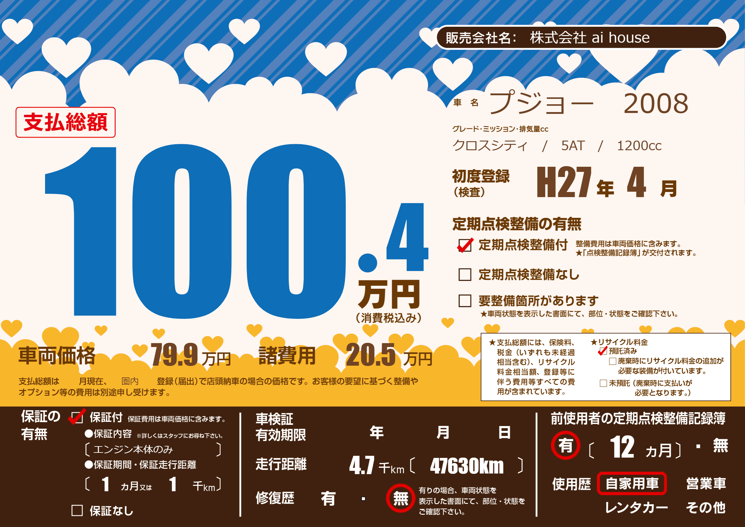| 定期点検整備 | 定期点検整備あり | ||
