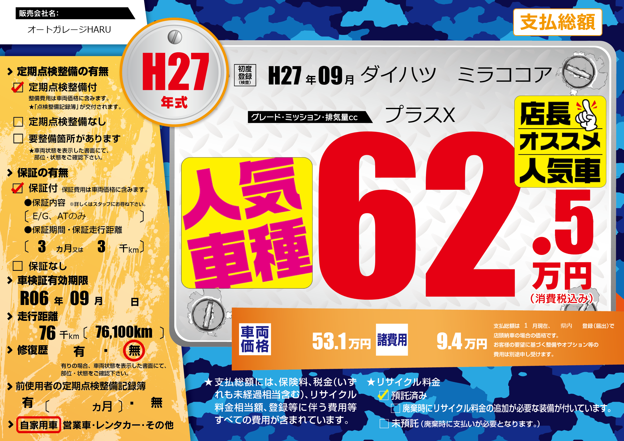 | 車検制限 | R06年 09月 - 日 | ||
