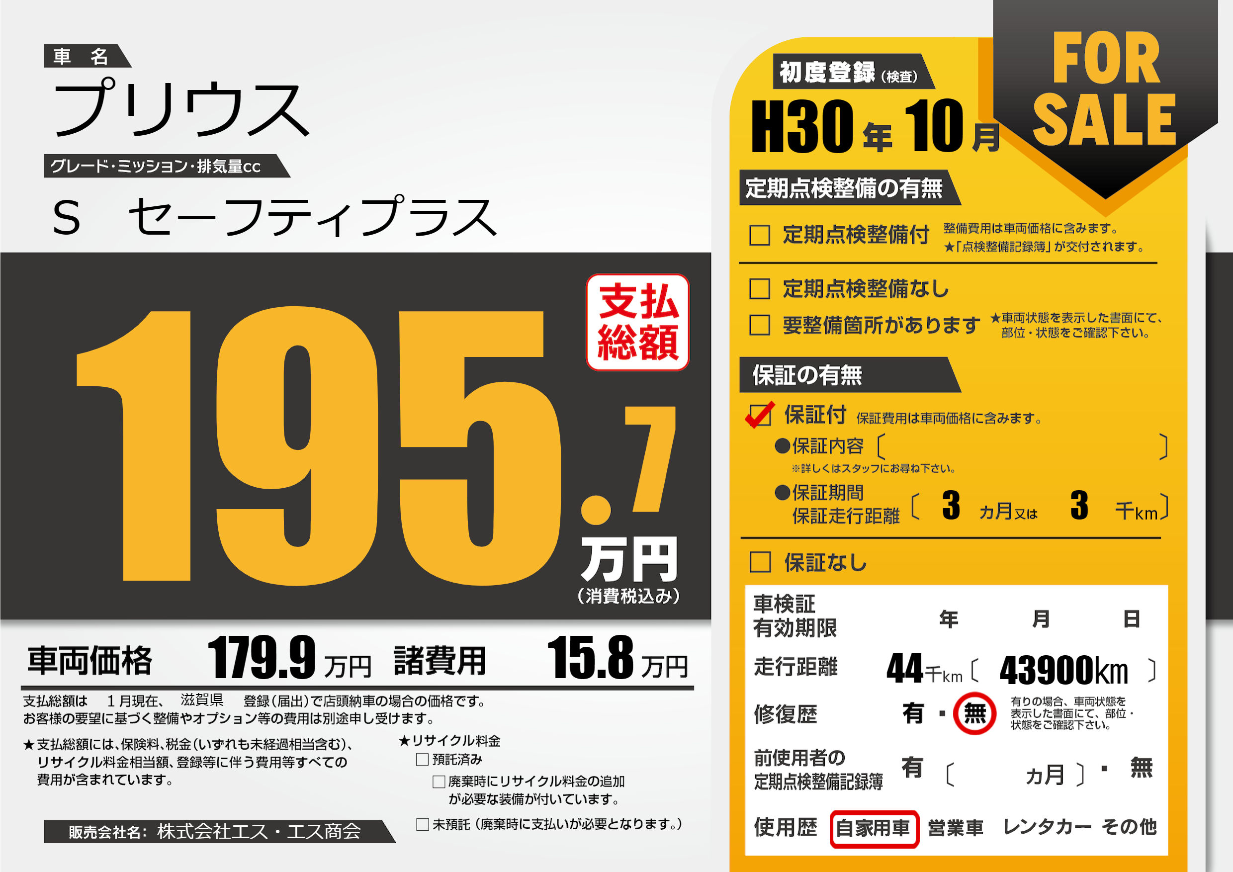 保証付き 保証内容(---) 3ヶ月または(3)千kmまで |