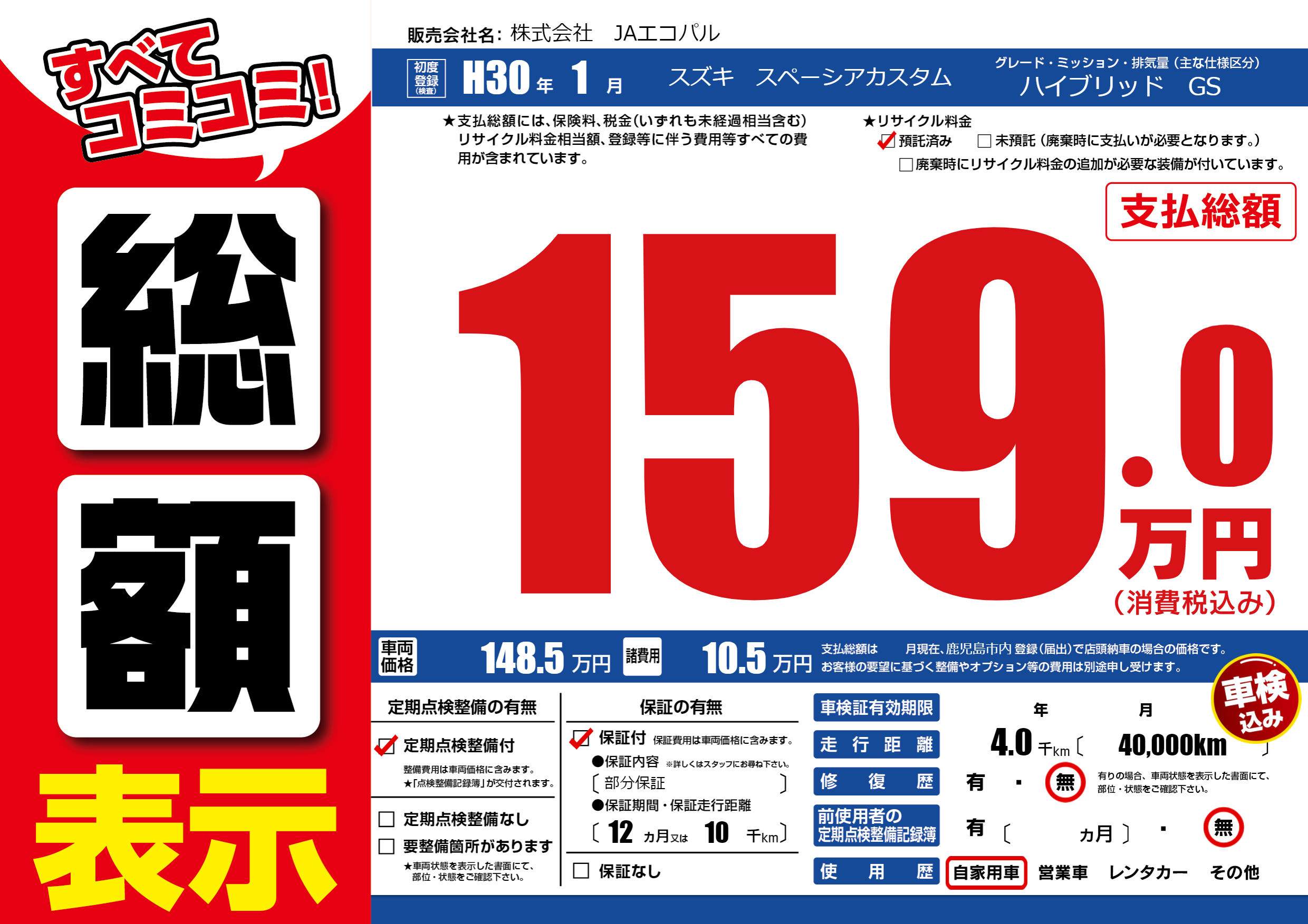 | 定期点検整備 | 定期点検整備あり | ||