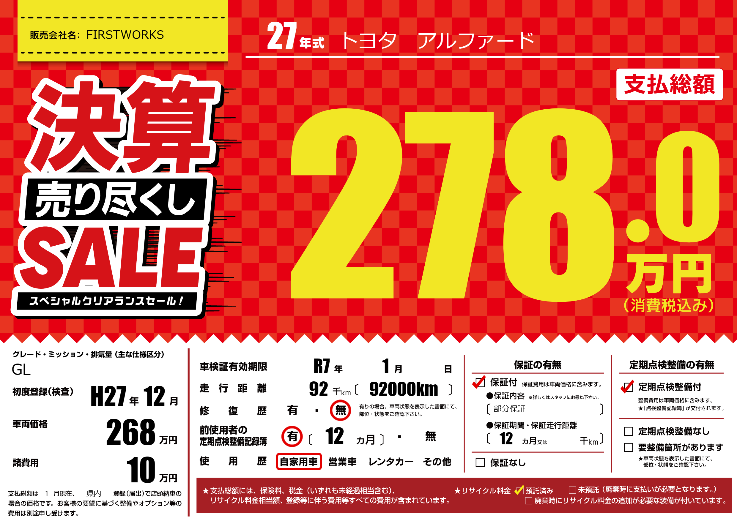 | 車名 | トヨタ アルファード | グレード ミッション 排気量 |