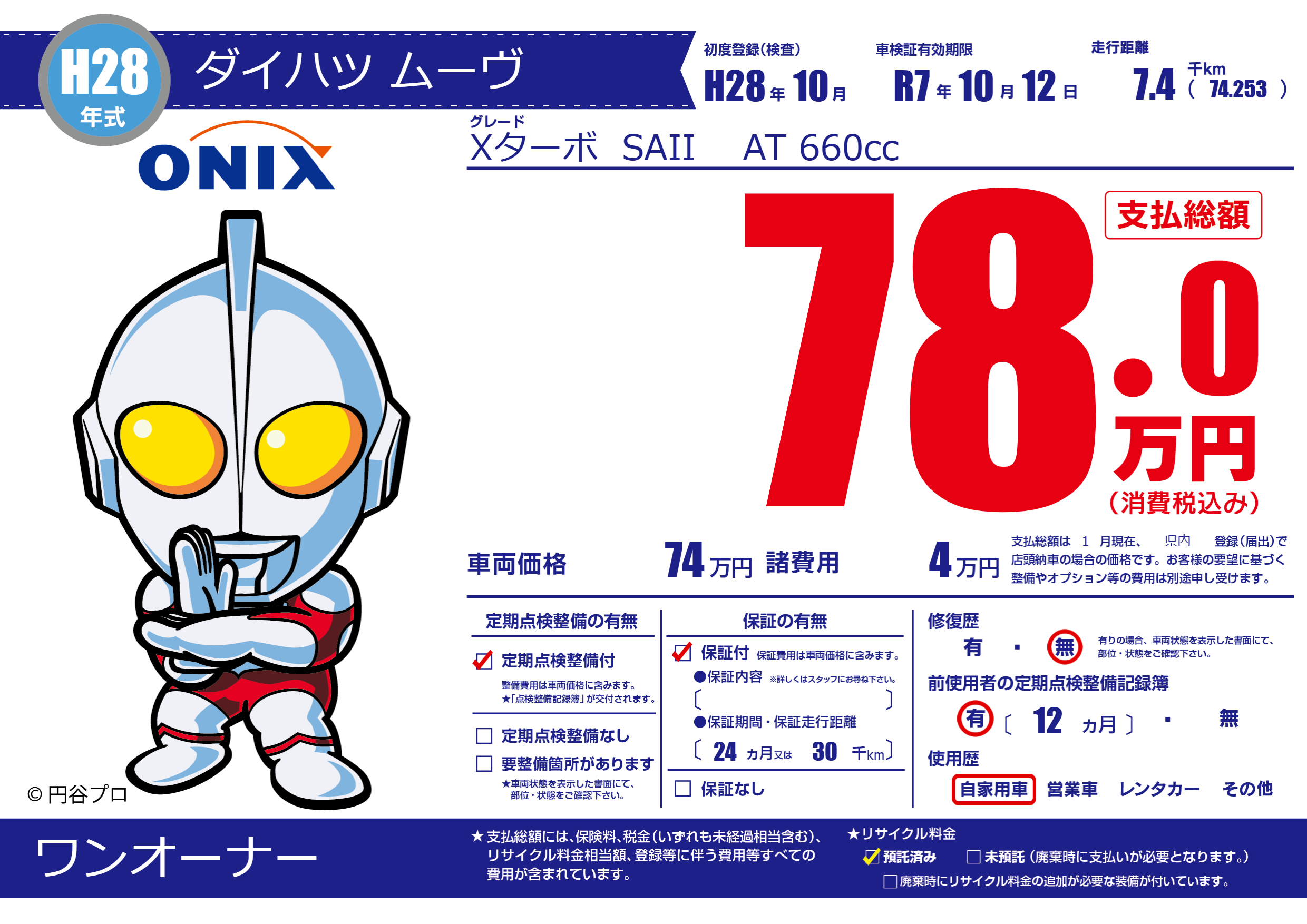 | 車検制限 | R7年 10月 12日 | ||