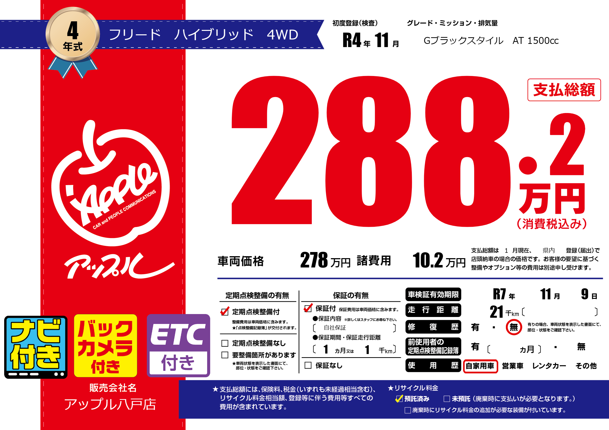 | 車検制限 | R7年 11月 9日 | ||