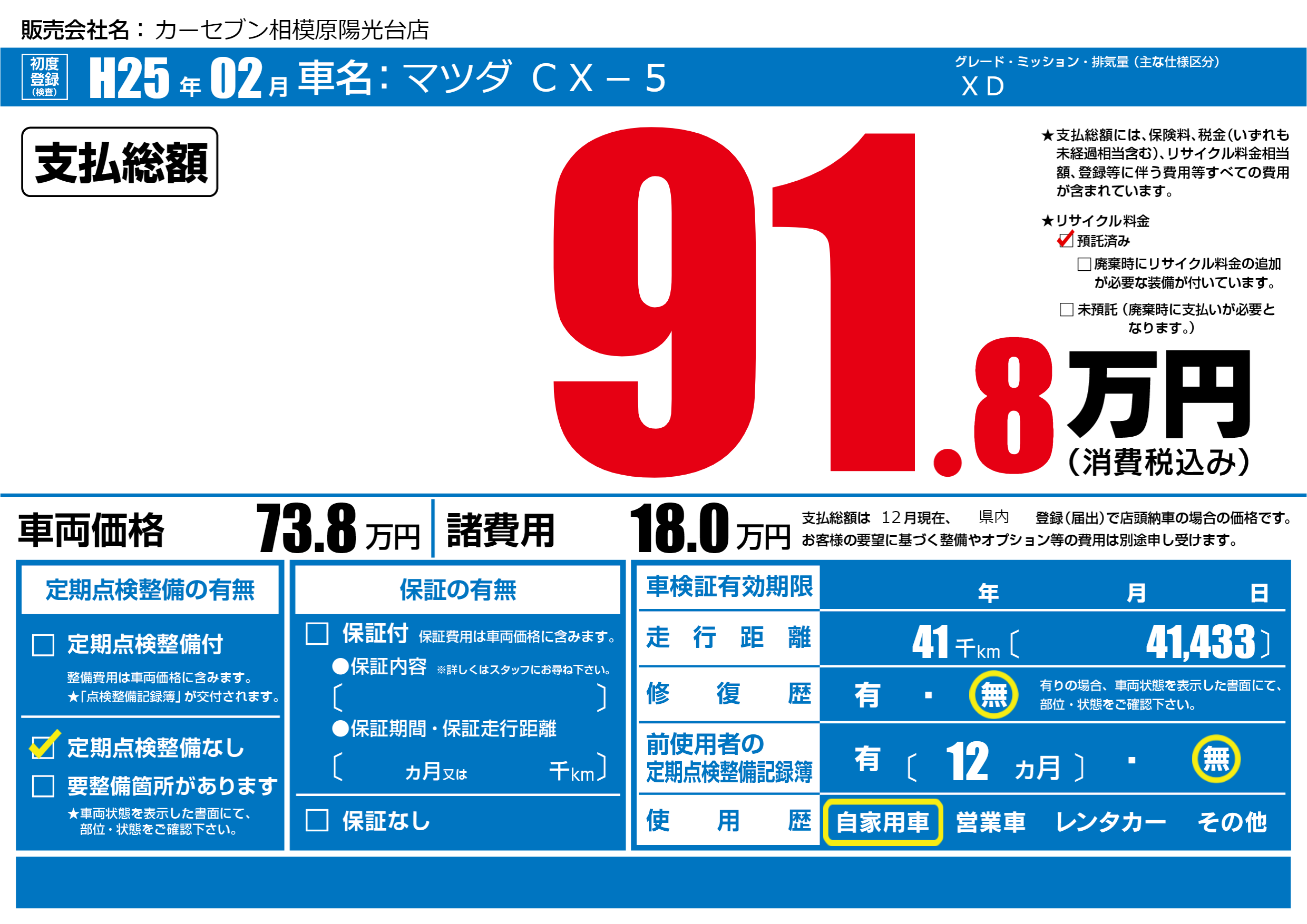| 定期点検整備 | 定期点検整備なし | ||