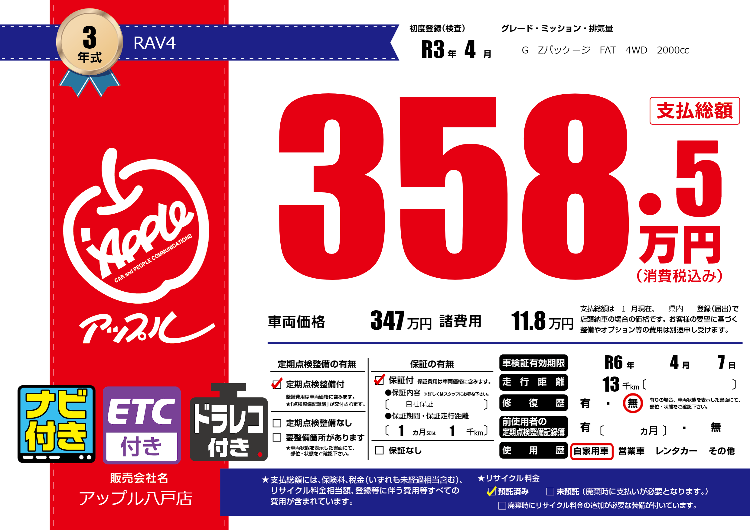 なし | 車検制限 | R6年4月7月 |