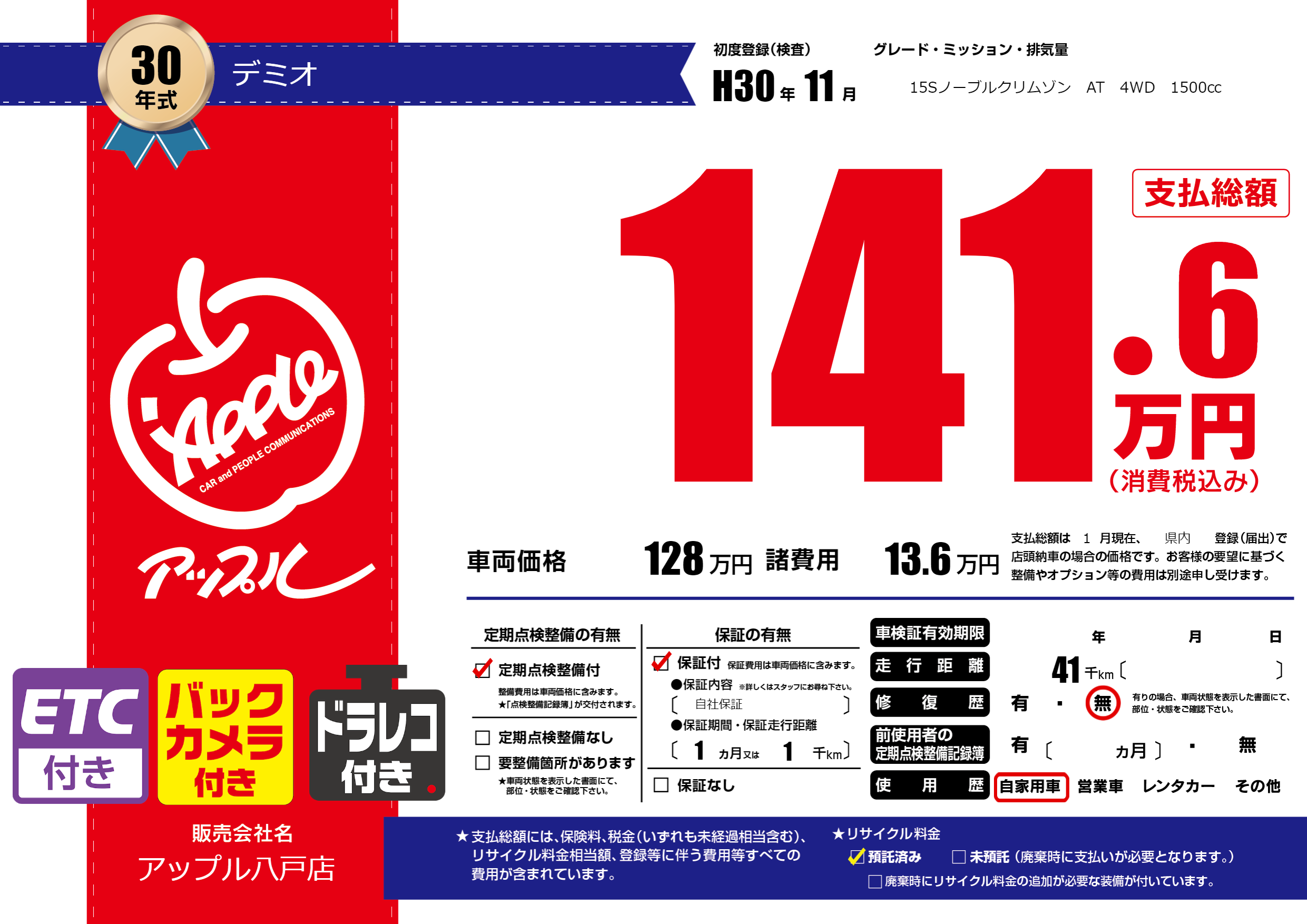 | 車名 | デミオ | グレード ミッション 排気量 |
