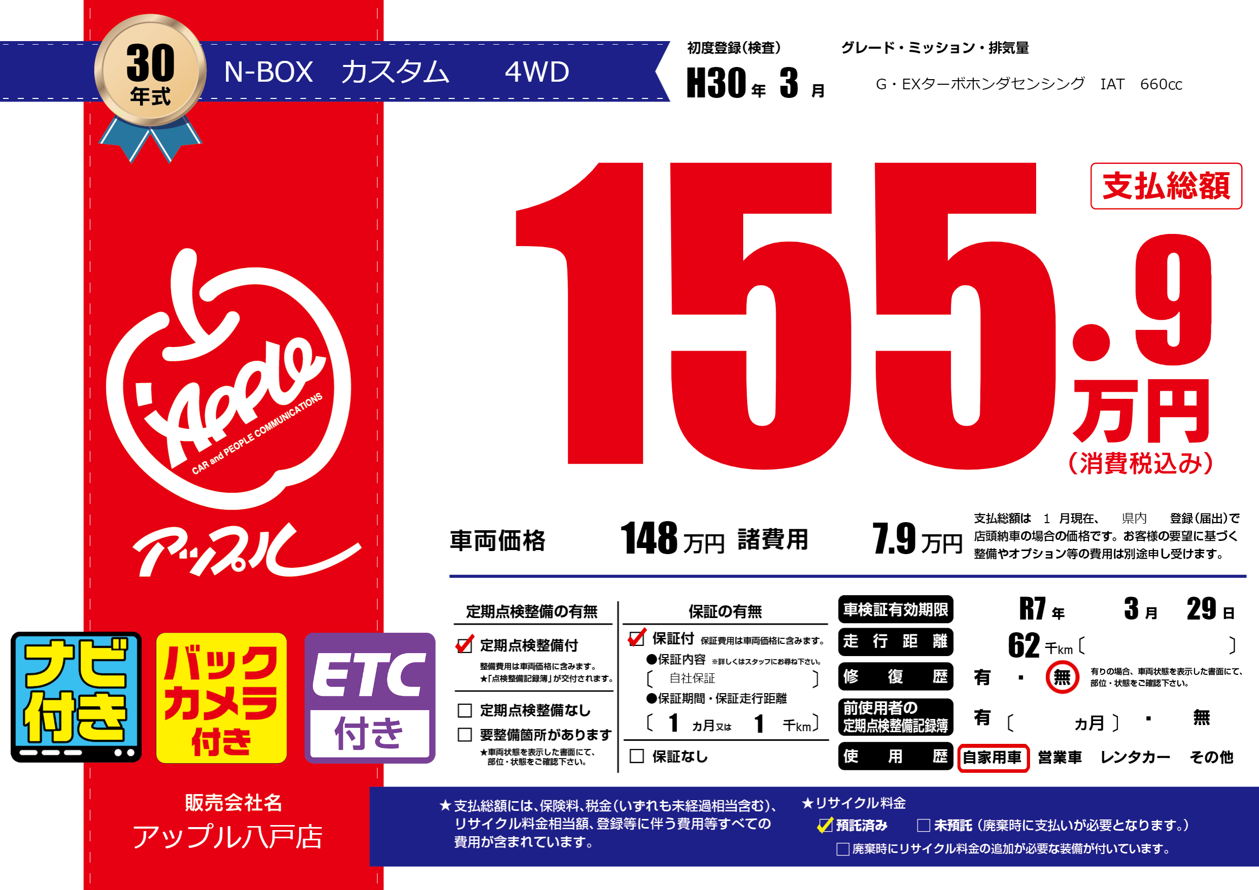 | 車検制限 | R7年 3月 29日 | ||