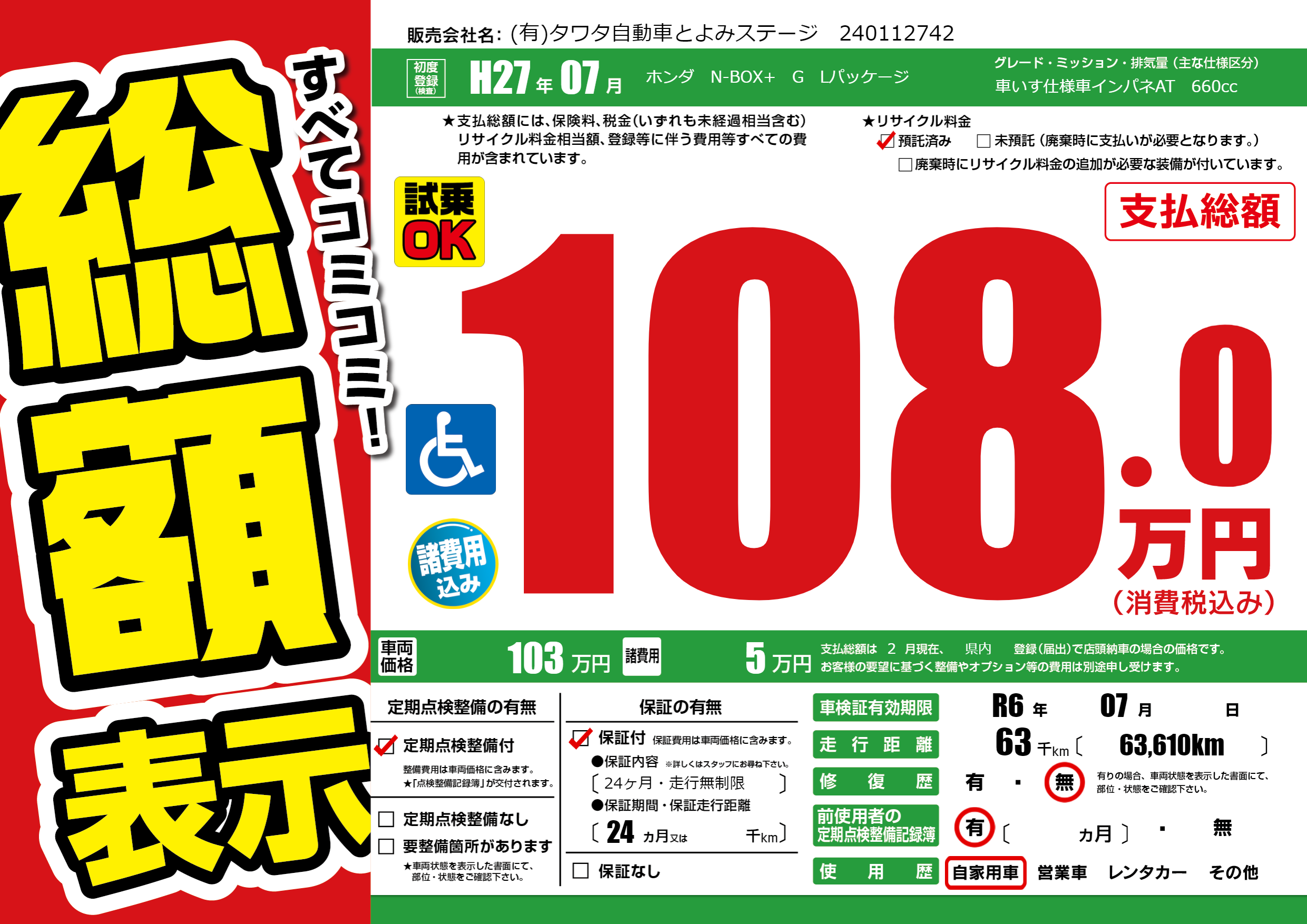 | 車検制限 | R6年 07月 - 日 | ||