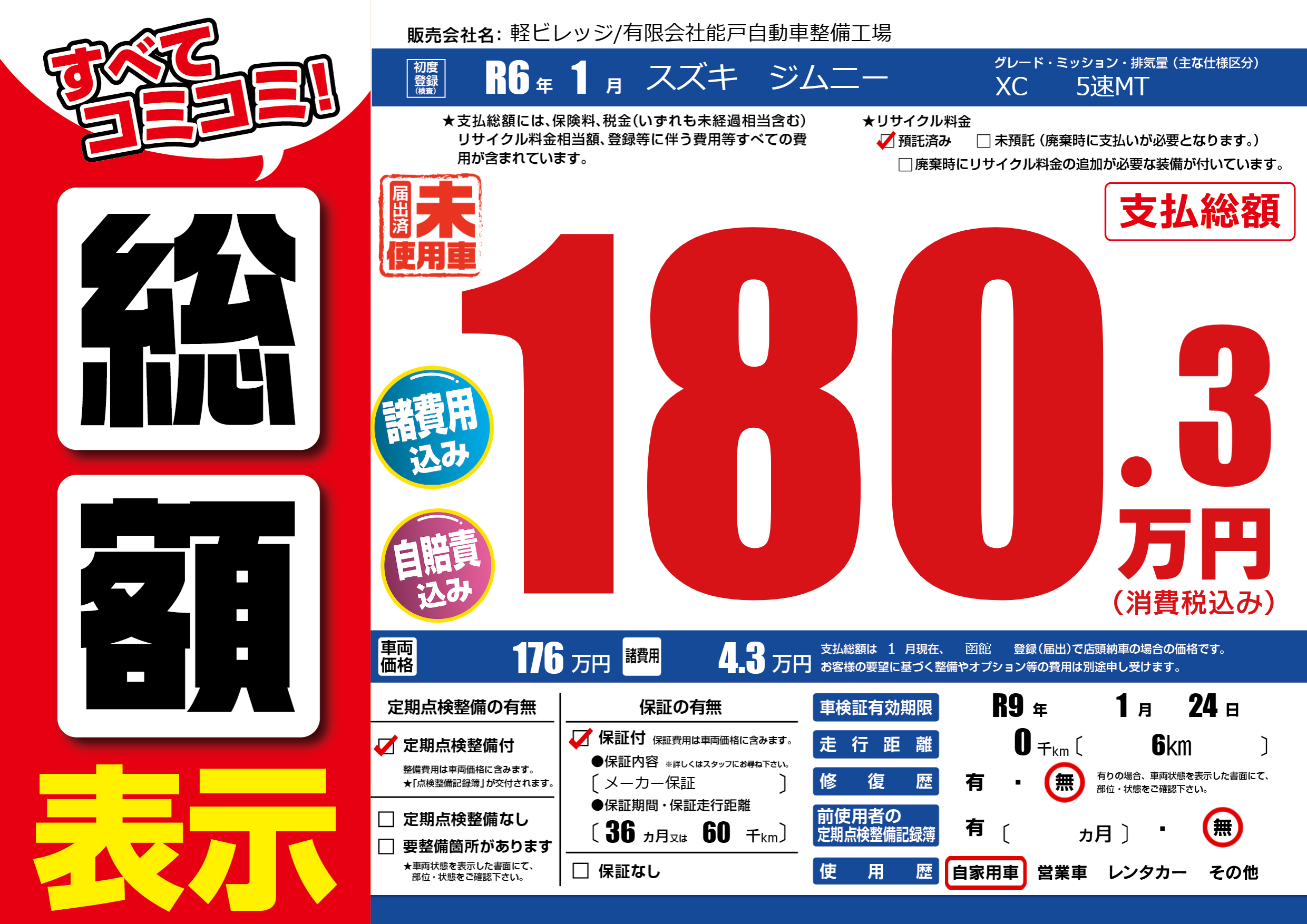 | 走行キロ | - | 初年度登録 | R6年1月 |