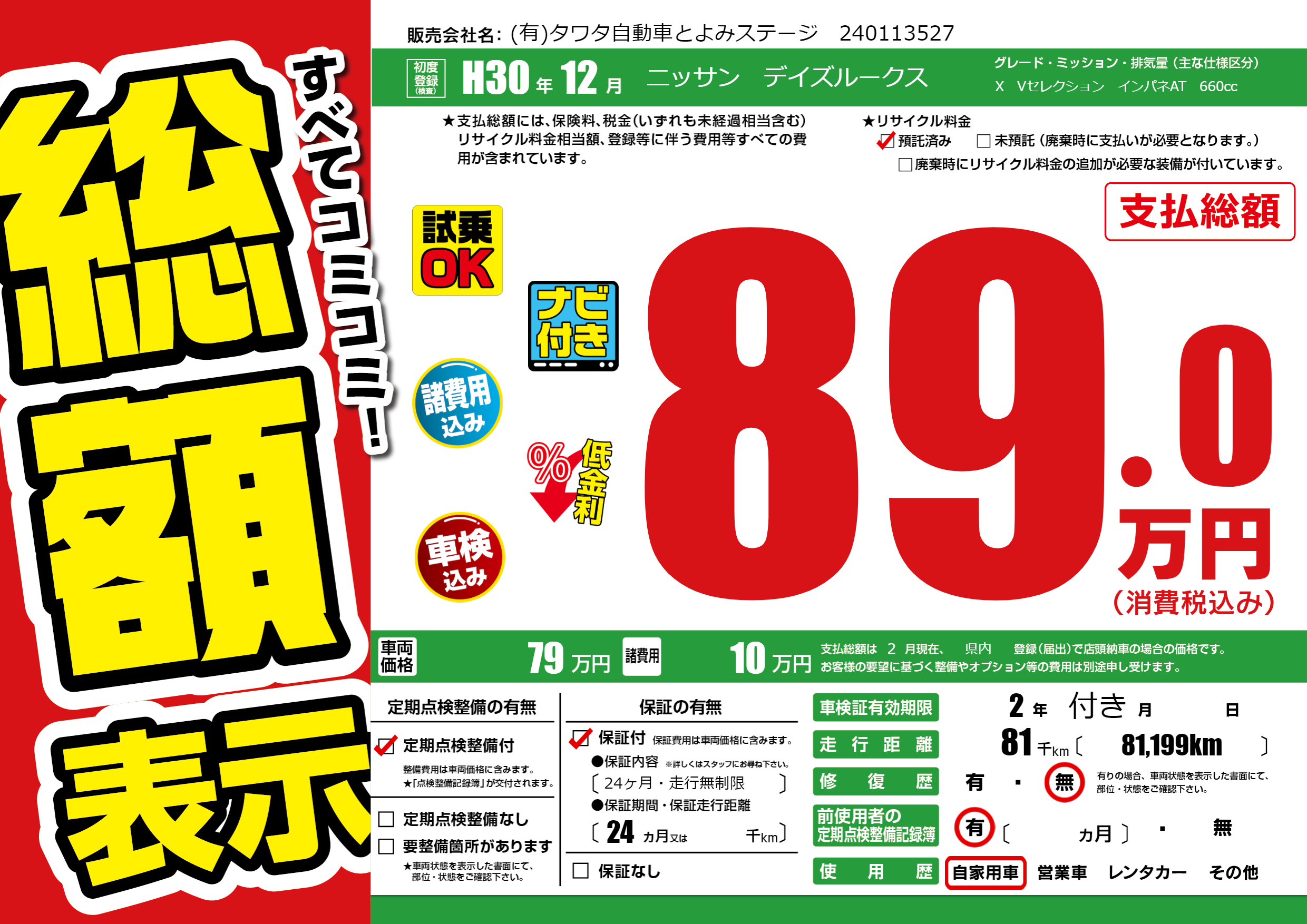 | 定期点検整備 | 定期点検整備あり | ||