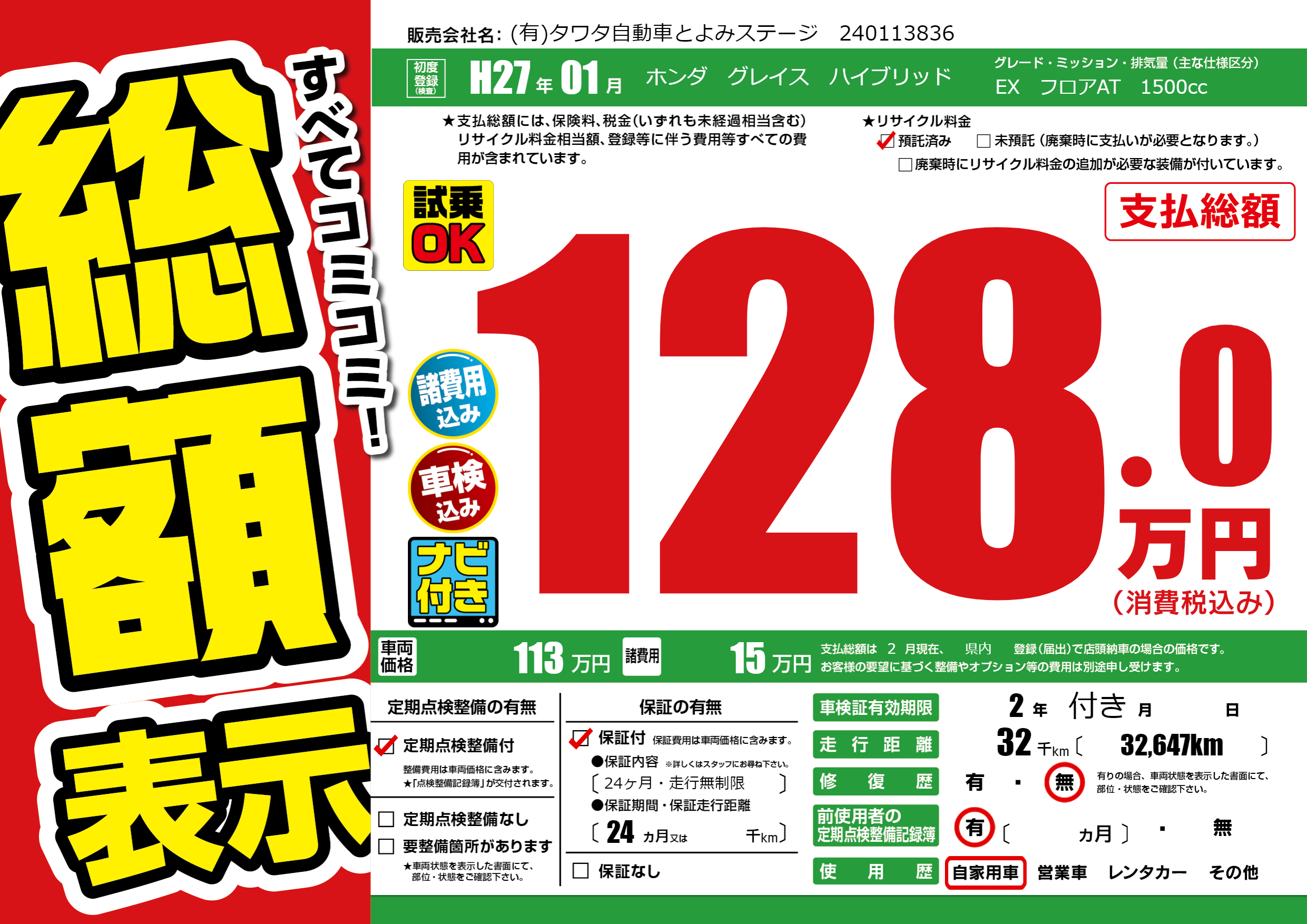 | 車名 | ホンダ グレイス ハイブリッド | グレード ミッション 排気量 |