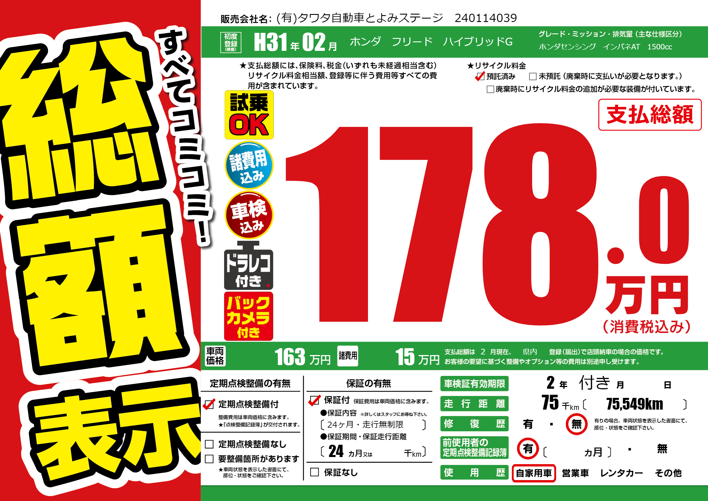 定期点検整備 | 定期点検整備あり |