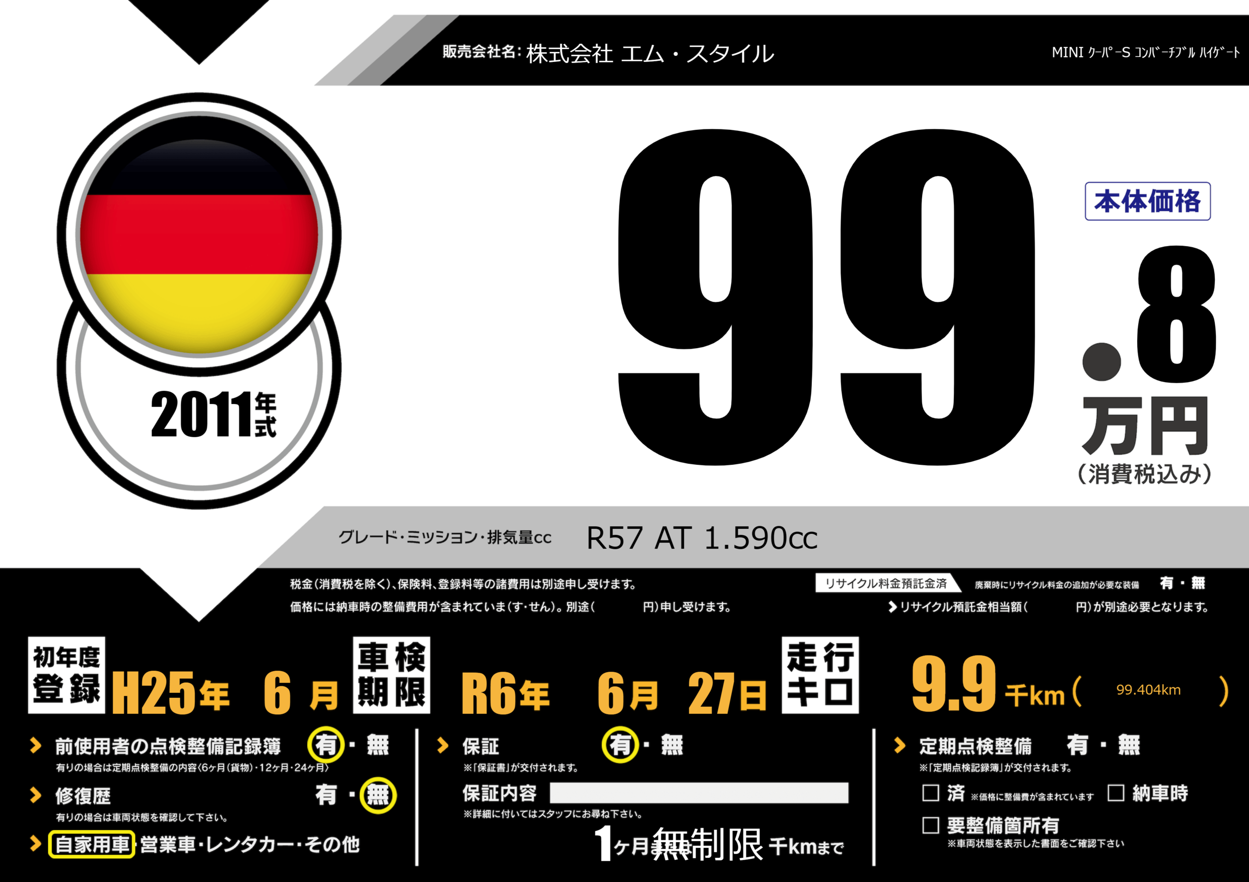| 車検制限 | R6年 6月 27日 | ||