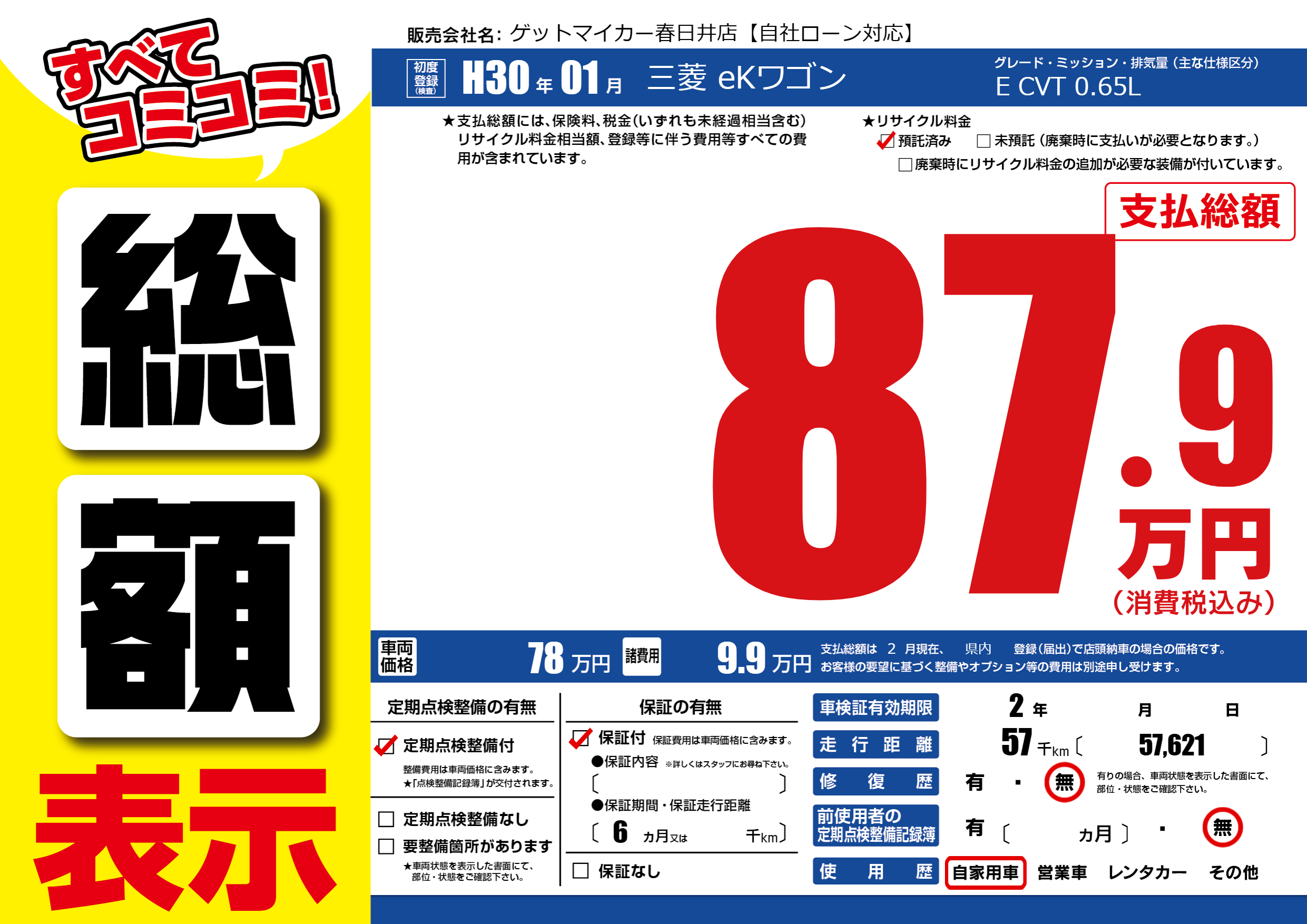 | 定期点検整備 | 定期点検整備あり | ||